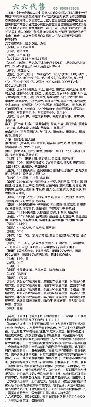 111334【电信唯满侠二少5k】双非六红白娃娃蓝人面2六限十一W奇遇书阴阳两界黑白路资历11W7五代黄重阳衣灰竹影衣黑懒猪衣黑傣族衣黑椿山衣白鹭衣五七盒灯盒白菩提盒苍盒牛盒黑四元盒黑狮盒六中盒小金龙盒小熊盒芙蓉盒白幽昙富婆套黑枕戈小红龙衣白泳衣彩云归素青复刻粉二娃白二公主夜斩白孤云夜斩白暮长35限41成衣QR枕三代银黑10披风猴红小资历红资历金凤金巴卡金三代金白海岛金发雪月白发霸红尘千秋铸黄狐天妒画颜PVP64W