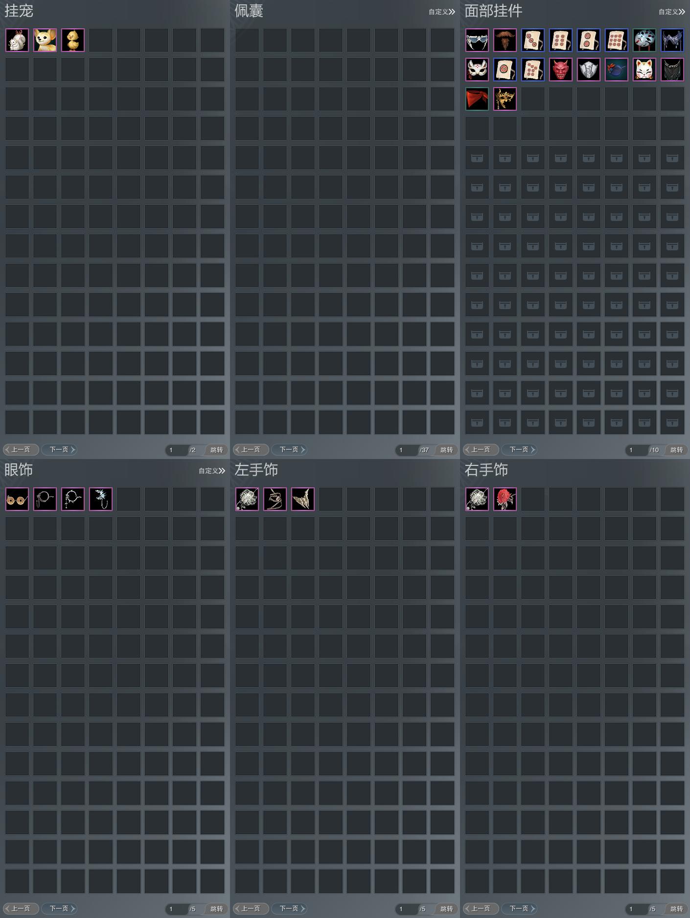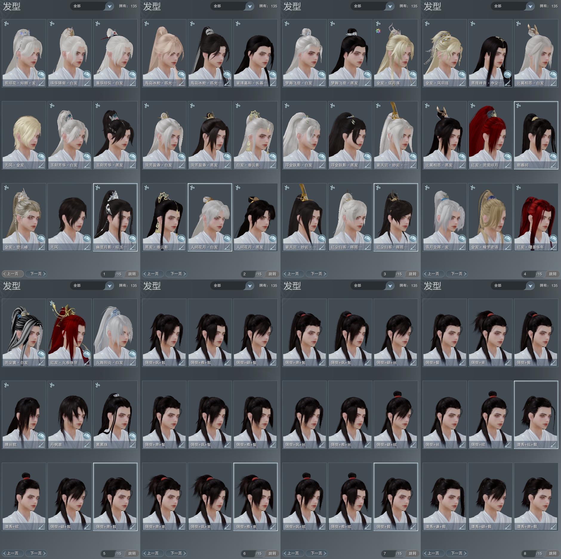 【发型】金发6个[资历金, 凤金, 巴卡金, 三代金, 无风金发, 白海岛金发], 红发3个[六红, 猴红, 小资历红], 黑发18个, 白发15个, 盒子发型[雪月白发, 五代七夕黑发, 净尘黑发, 五代七夕白发, 黑红尘黑发, 黑狮黑发, 小金龙黑发, 黑红尘白发, 黑狮白发, 小熊黑发, 小金龙白发, 芙蓉黑发, 六代中秋黑发, 白海岛黑发, 小熊白发, 五代黄重阳黑发, 芙蓉白发, 六代中秋白发, 白幽昙黑发], 总页数8