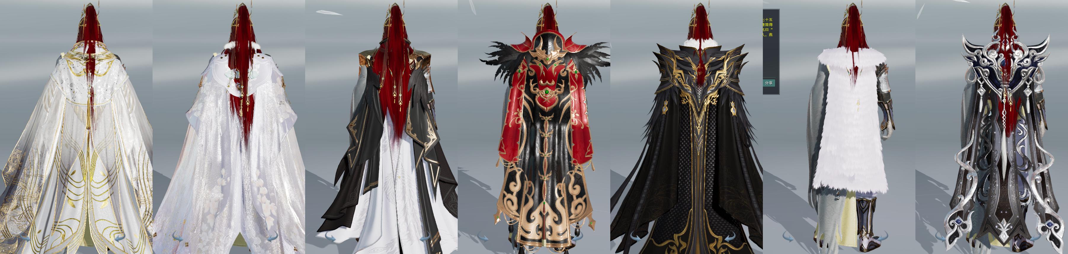 【披风】10个,[衍天预热披风, 7W资历披风, 情R枕, 三代银黑, 苍盒子披风, 星演披风, 牛盒披风]