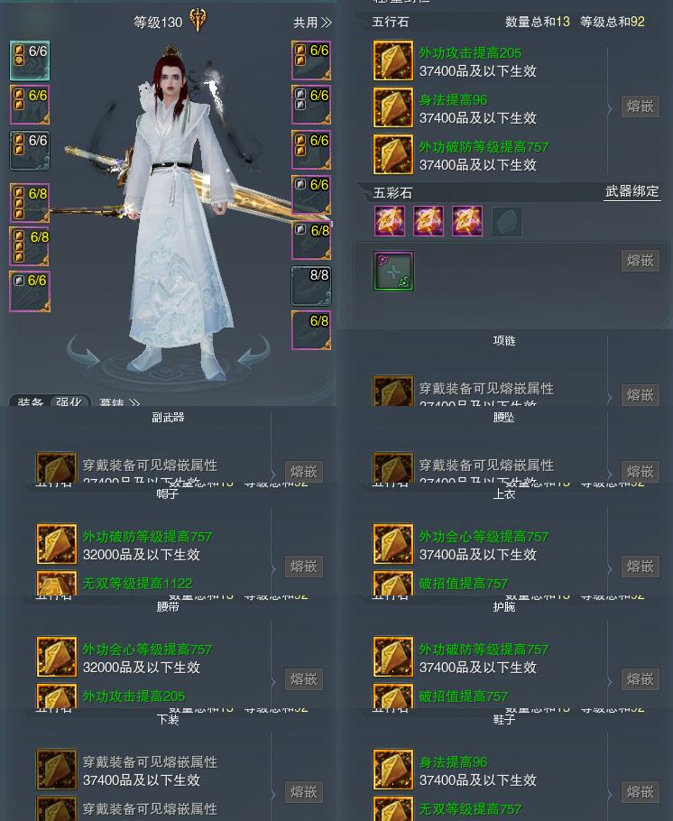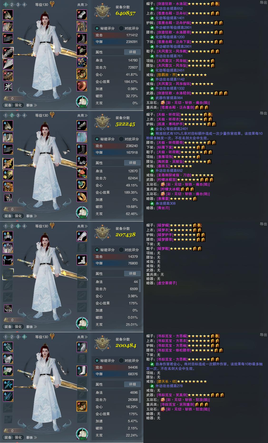【装备】130级,山居剑意/问水诀PVP640857,山居剑意/问水诀PVE522245,装备三207438,装备四200484