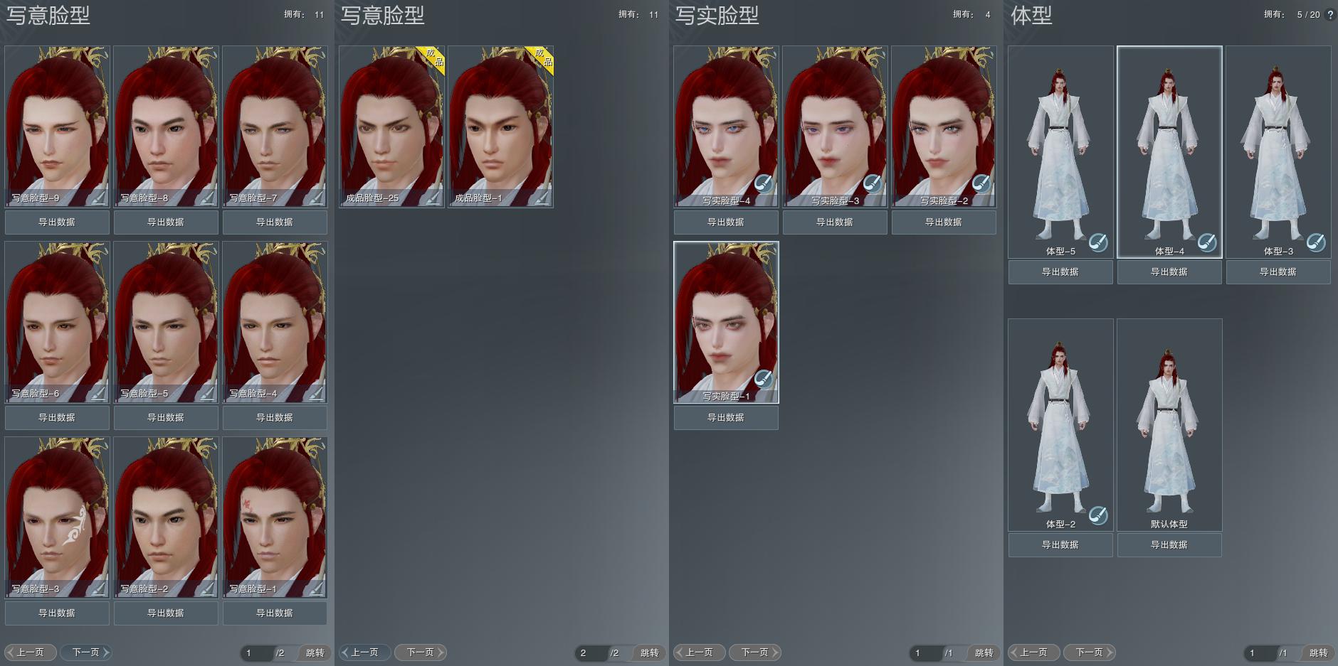 【捏脸】写意脸型11个,写实脸型4个,体型5个