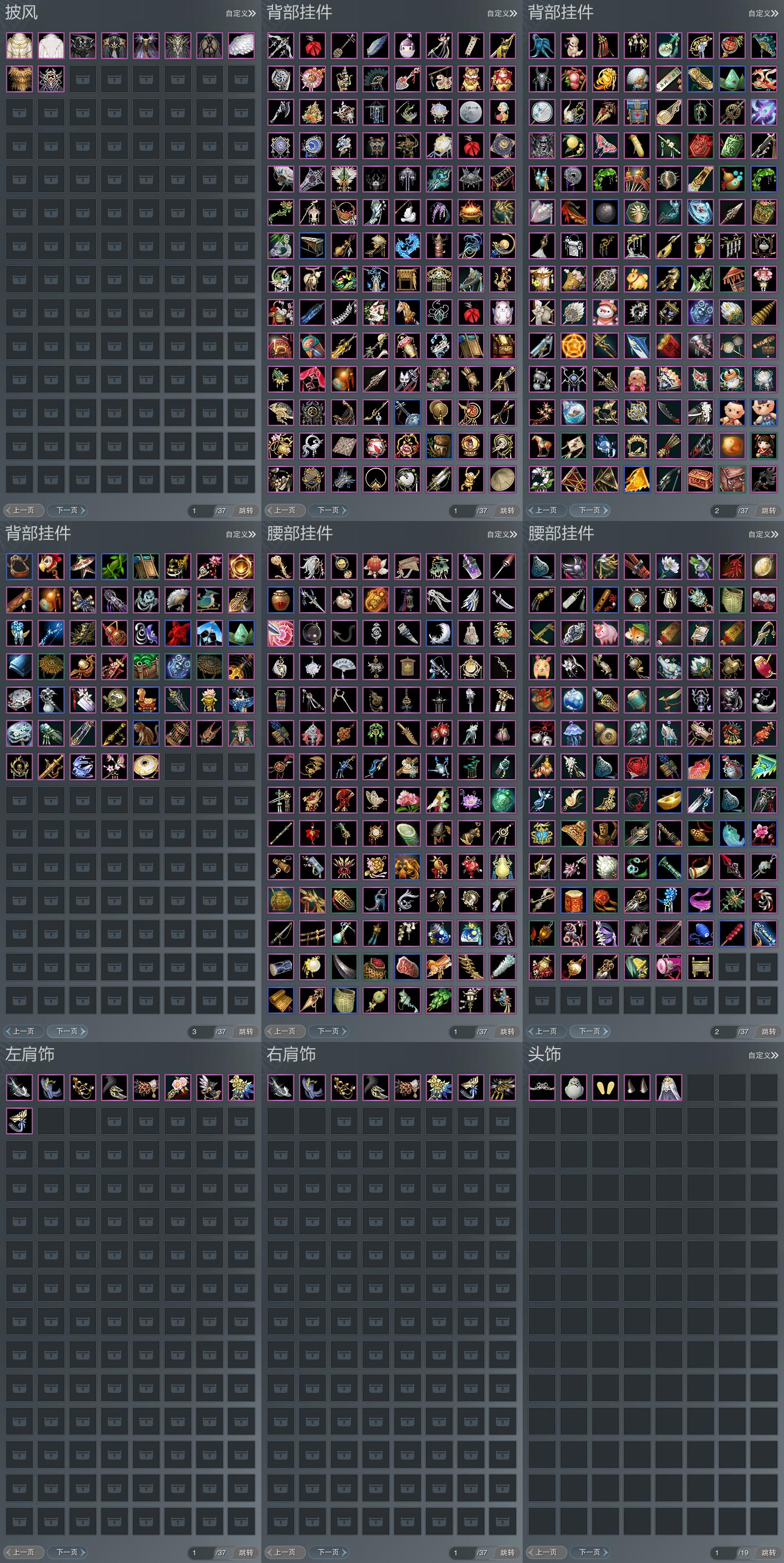 【肩饰】9左,8右,[双鱼曳波·无量·左, 广漠听星·左, 尘间清欢·左, 歃血关山·左][广漠听星·右, 尘间清欢·右, 歃血关山·右]