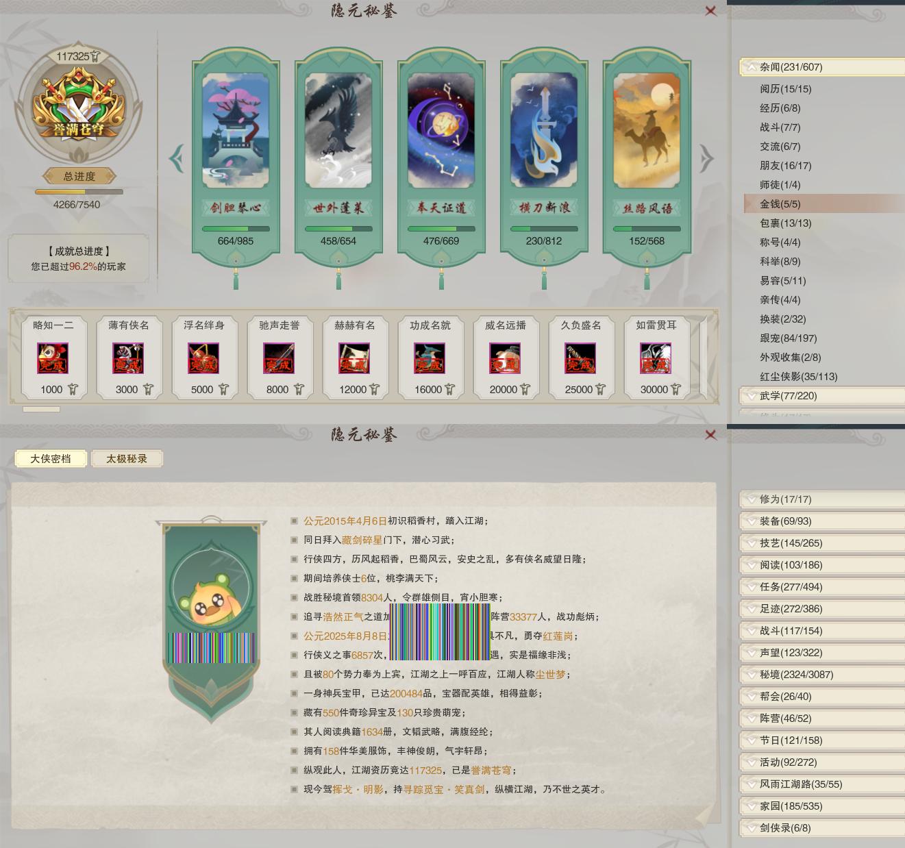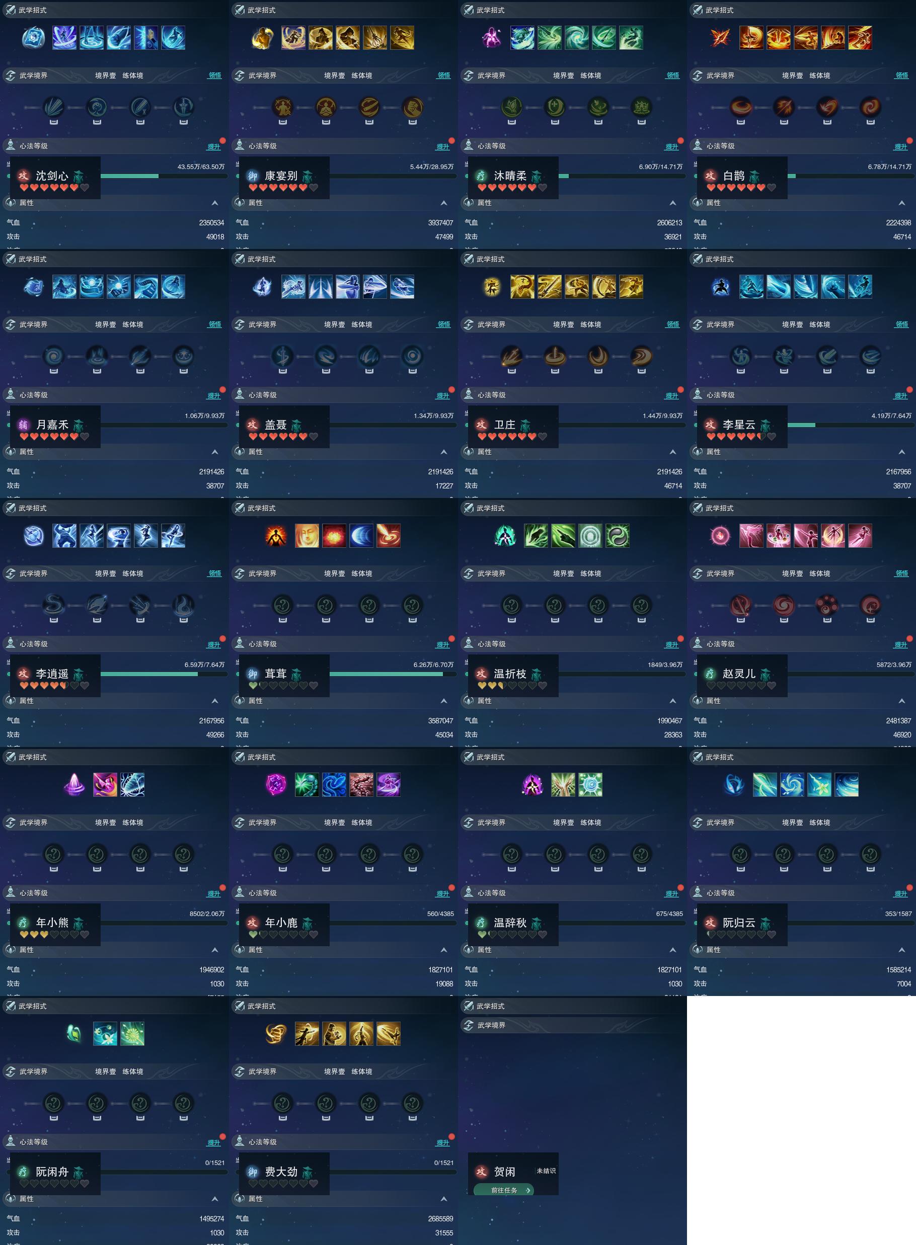 【同伴】沈剑心82级境界壹,康宴别75级境界壹,沐晴柔70级境界壹,白鹊志70级境界壹,月嘉禾67级境界壹,盖聂志67级境界壹,卫庄志67级境界壹,李星云65级境界壹,李逍遥65级境界壹,茸茸志64级境界壹,温折枝60级境界壹,赵灵儿60级境界壹,年小熊55级境界壹,年小鹿41级境界壹,温辞秋41级境界壹,阮归云12级境界壹,阮闲舟1级境界壹,费大劲1级境界壹,贺闲级