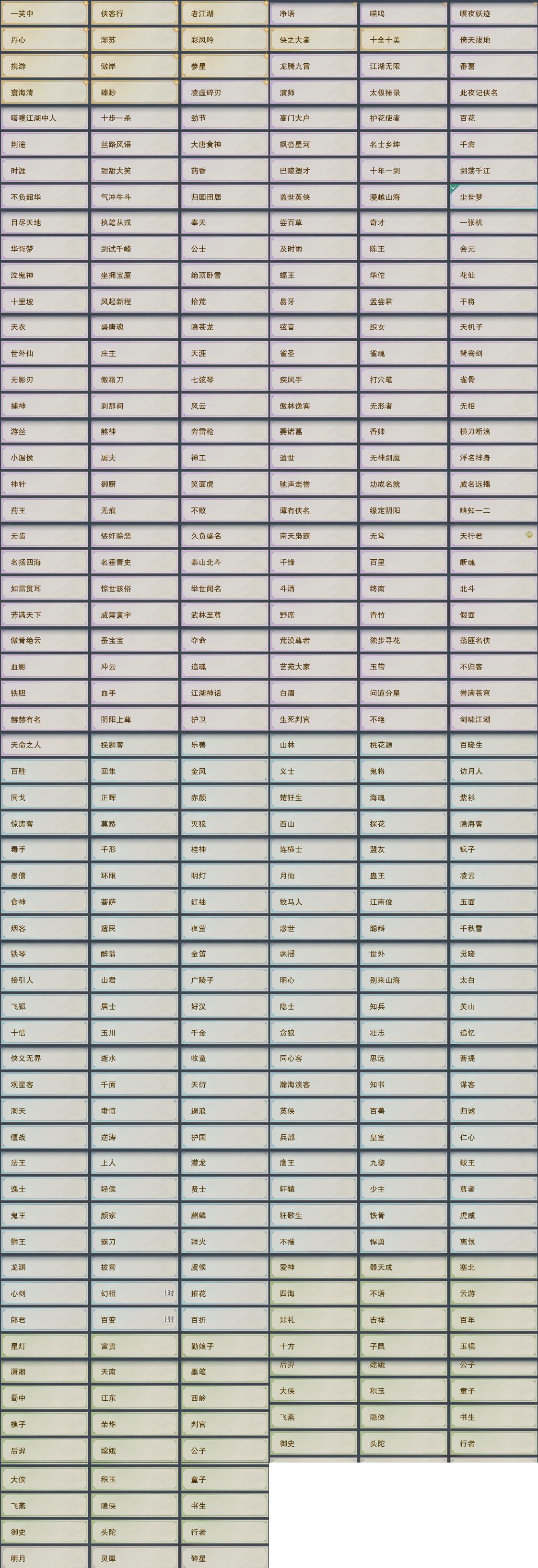 【奇趣】49个[奶奶椅子, 子夜墨歌, 西山拂雪, 瑶境宸游, 霞醴碎香, 朔关雷隐, 照夜白龙, 乘雀揽星, 飞花镂月, 千里炎龙]