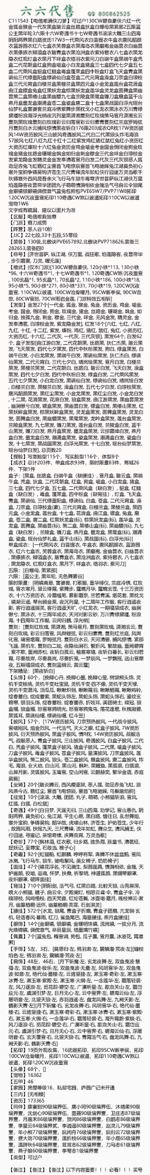 C111543【电信唯满侠刀爹11W5】可过户130CW碧血豪侠六红一代金狐金猴金一代灰黑盒踏云盒丝路盒狄盒白螺母黑紧那2五限蓝公主黑年轮3六限十六W奇遇书十七W奇遇书滚滚大雕三山四海阴阳两界黑白路资历17W3一代乘风衣白菩提衣牛盒衣唐风韶颜衣蓝游园衣红六七盒衣芙蓉盒衣黑海岛衣黑藏袍金幽昙衣白幽昙衣黑傣族衣卿酒盒衣踏青盒衣黑沧洲盒衣紫持君衣八七盒衣黑龙隐衣红观灯盒衣黑月下咩盒衣络羽衣紫问刀白端午盒黑端午盒秃盒二代花朝盒红盒狗盒喵盒小白龙盒猪盒三七盒四代七夕盒五七盒二代乘风盒貂盒红腿盒毒盒蓬莱盒四中粉盒灯盒飞天盒青盒黑谪仙三代绿重阳盒绿谪仙白盒苍盒二代元宵盒澡盒刀宗盒白琼枝盒三代元宵盒白楼兰盒黑楼兰盒黑四元盒小金龙盒莲台盒花滑盒曲江盒镖盒兔盒红黑妖龙盒棕黑妖龙盒莲华盒灵龙盒圆舞盒黑幽昙策二盒黑椿山盒黑幽馥九七盒兰陵盒黑鹭盒镰刀盒扇盒蓝千山燕月盒墨龙盒潮涌盒苍二盒瓷盒唐二盒十七盒黑战国白浮光瑶台仙梦礼盒富婆套兰庭冷绣紫舞步黑枕戈小红龙衣黑泳衣万川青绿黛瑾粉浪海浮光绡夜沉列星黑潇湘复刻红玫瑰策马雪月潇湘玄云复刻黑玫瑰复刻白玫瑰彩云归落雪彩云归素青复刻红兰庭罗姆弦月复刻白水云捕风惊情黑夜斩白176限203成衣QR枕17W资历披风14W资历披风三山披风奇遇披风二代白二代黑狼头炸毛海浪57披风七红八红九红十红十二红紫发鸡红猪红鼠红兔红小资历红大资历红蝶粉十六红兔金资历金鸡金喵金考金国金倒闭金狗金玫瑰金猪金丝路金珊瑚金飒金如归金刺金穆金三代金咩金白琼枝金发紫龙隐金发精灵金金发奉清茗雪月白发二代灰三代灰银恶人狐劲足赤兔飞虹霸红尘雷首飞电惊辰雷首飞电驰辉兔江湖莫负初心塞外宝驹争铸吴钩济苍生三尺青锋流年如虹侠行囧途万灵当歌千秋铸塞外西风昆吾余火飞行马车狼车毒穹济世菩萨纵江湖侠万里焰莲隐客夜昙帝华团团丸子萌萌情漪相依金箍浩气弓曲云伞狼尾金眼镜银眼镜倜傥意气蓝兔包狗包PVE65W7/PVP71W8拓印120CW沉夜重雪拓印110奇遇CW煞以彼道拓印110CW以彼道宠物1W6更新外观