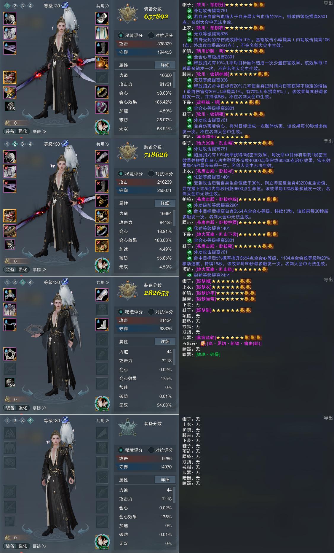 【装备】130级,北傲诀PVE657892,北傲诀PVP718626,装备三282653,装备四0