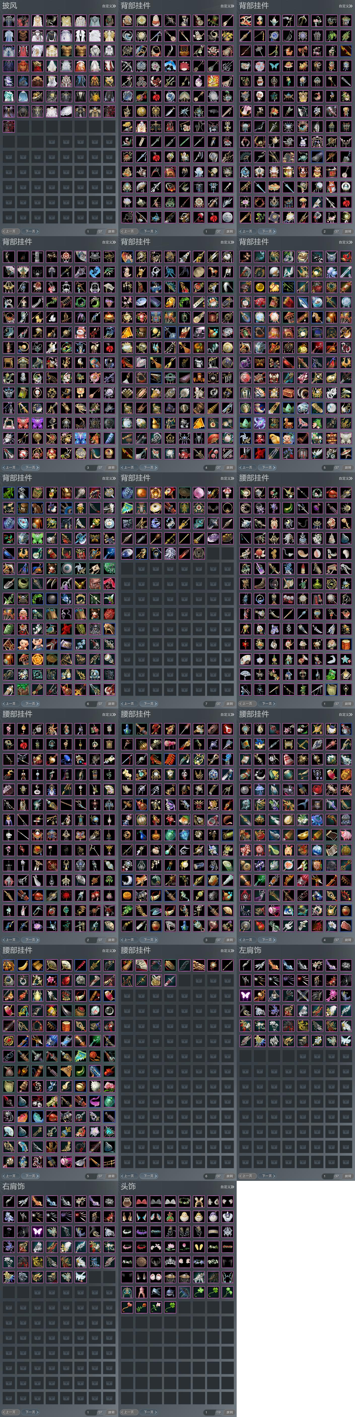 【腰挂】572个[水龙, 狼尾, 青盒子折扇, 青盒子团扇, 亢龙锏·玄机, 轻语春风·暮雨, 红刀, 鲨鱼尾巴, 海星腰挂, 燕月盒腰挂]