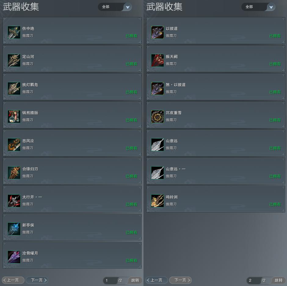 【拓印】19页外观收集,16武器拓印,拓印95CW新亭侯,拓印100CW沧骨曜月,拓印110CW以彼道,拓印110奇遇CW煞以彼道,拓印120CW沉夜重雪
