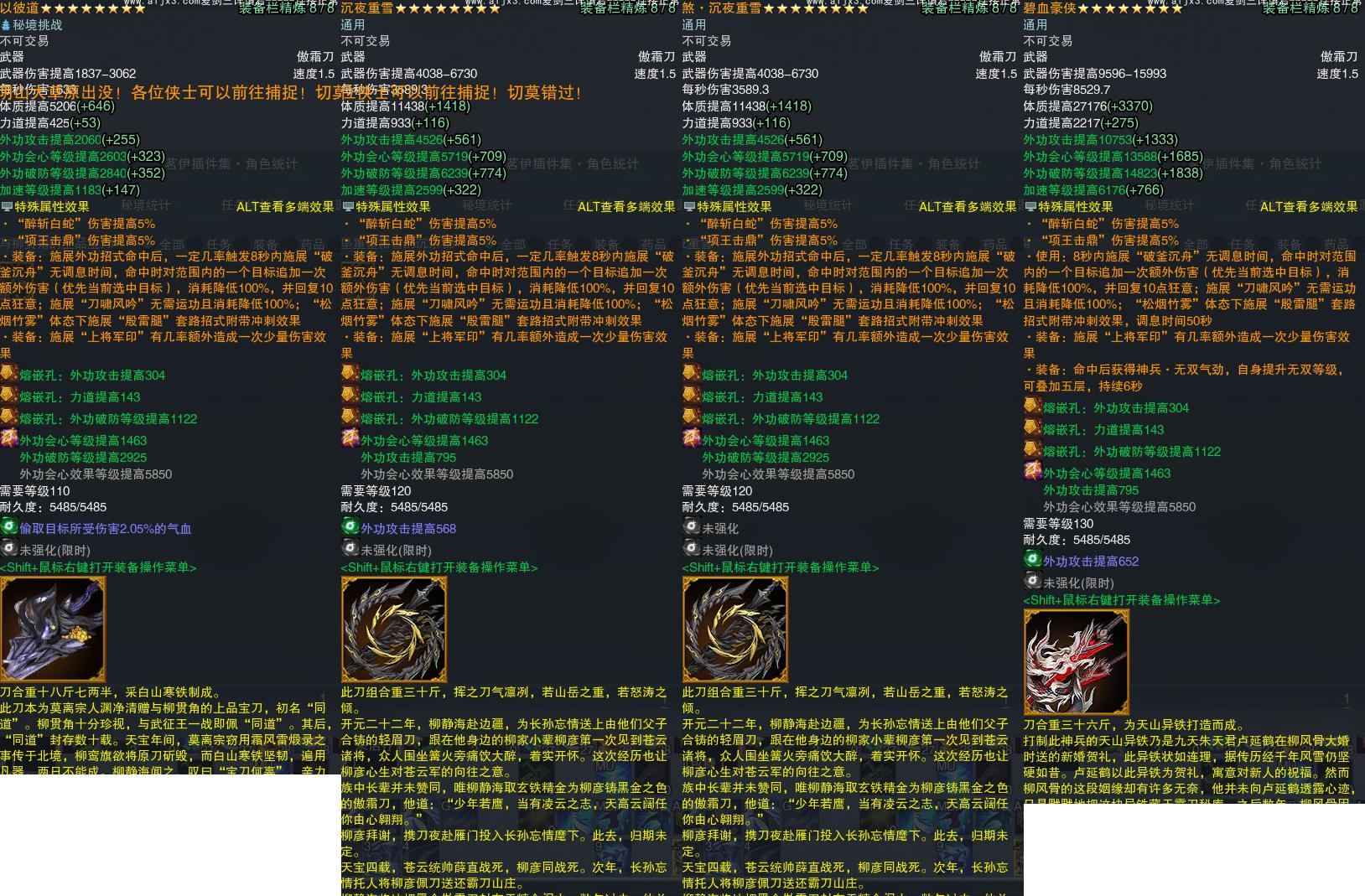【橙武】(仅本门派)[130CW碧血豪侠, 120小铁*113, 130小铁*96, 十六W奇遇书*1, 十七W奇遇书*1, 120奇遇CW煞·沉夜重雪, 100玄晶*1, 95玄晶*1, 70玄晶*2, 110小铁*186, 100小铁*18, 95小铁*5, 90小铁*271, 80小铁*331, 70小铁*19, 120CW沉夜重雪, 110CW以彼道, 100CW沧骨曜月, 95CW新亭侯, 90CW血悲, 80CW雪怒, 70CW雨岩金莲, 门派特效五相斩]