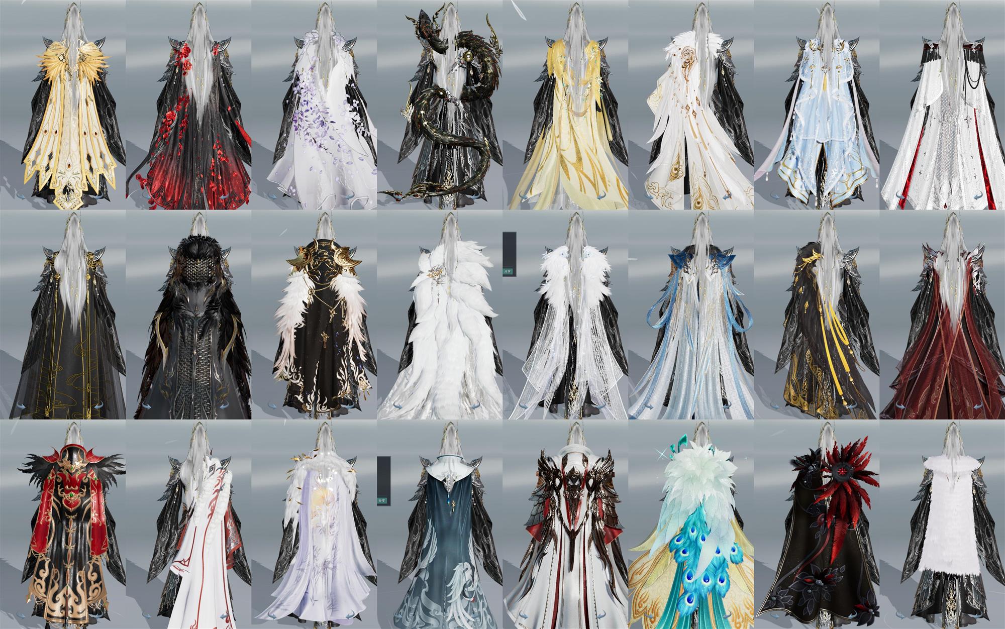 【披风】30个,[赵云披风,一代战令披风, 刀宗预热披风, 7W资历披风, 黑盒子披风, 一代恶人, 情R枕, 14W资历披风, 青盒子披风, 奇遇披风, 白盒子披风, 二代黑, 孔雀披风, 天辉, 刀宗盒披风, 策二披风, 苍二盒披风, 白山河, 玄锦流渊, 灵狐披风, 玉鸾雪, 星河玄梦, 二代战令披风, 繁华金语, 赤庭葳蕤]