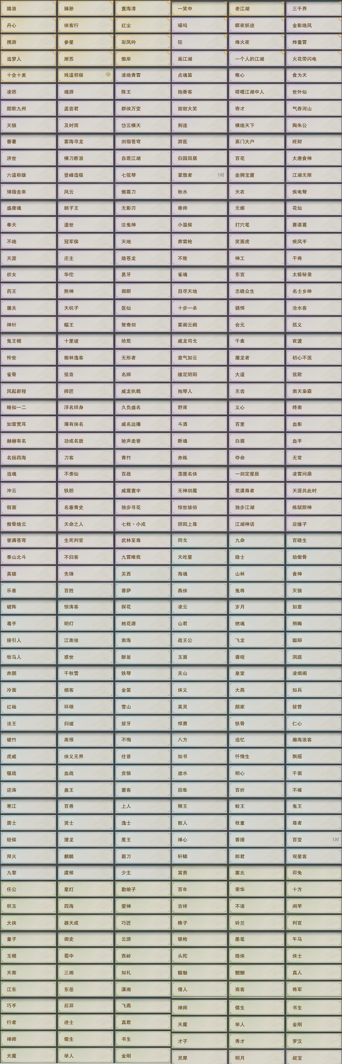 【奇遇】33个[劝学记, 雪山恩仇, 阴阳两界, 兔江湖, 平生心愿, 黑白路, 惜往日, 塞外宝驹, 韶华故, 济苍生, 少年行, 扶摇九天, 故园风雨, 三尺青锋, 流年如虹, 舞众生, 侠行囧途, 茶馆奇缘, 庆舞良宵, 生死判, 凌云梯, 炼狱厨神, 赴九幽, 度人心, 空谷回音, 旧宴承欢, 镜中琴音, 红尘不渡, 侠者成歌, 拜春擂]