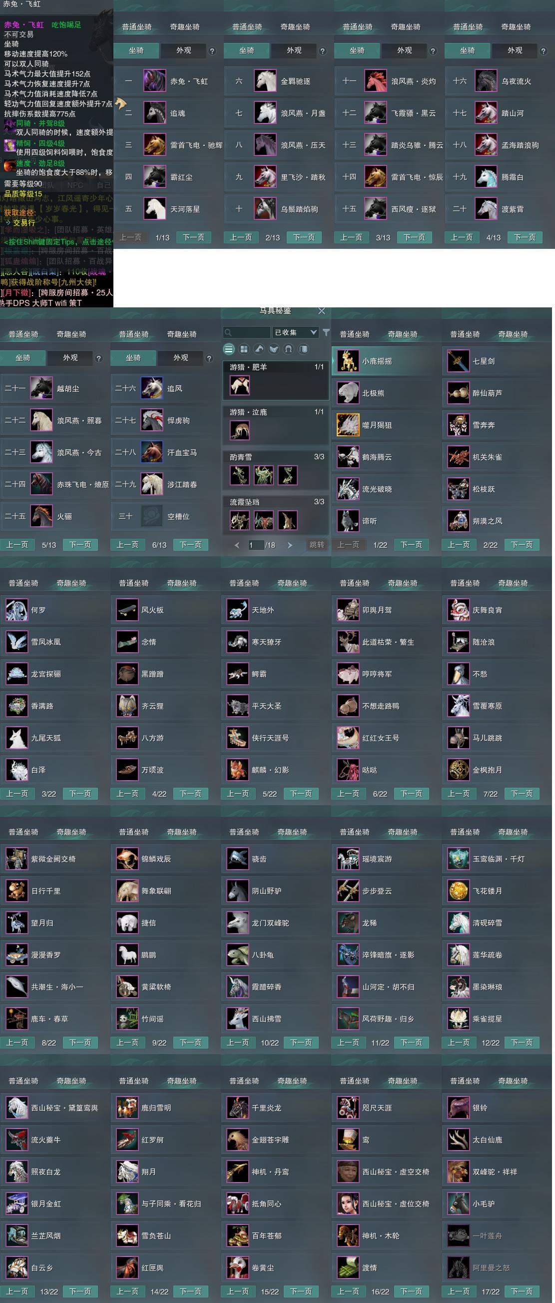 【坐骑】29个[踏炎腾云, 西风瘦逐狱, 赤珠燎原, 飞霞骠黑云, 里飞沙踏秋, 劲足赤兔飞虹, 小樱马, 金羁驰逐, 浪风燕今古, 霸红尘, 雷首飞电惊辰, 雷首飞电驰辉, 乌鬃踏焰驹]