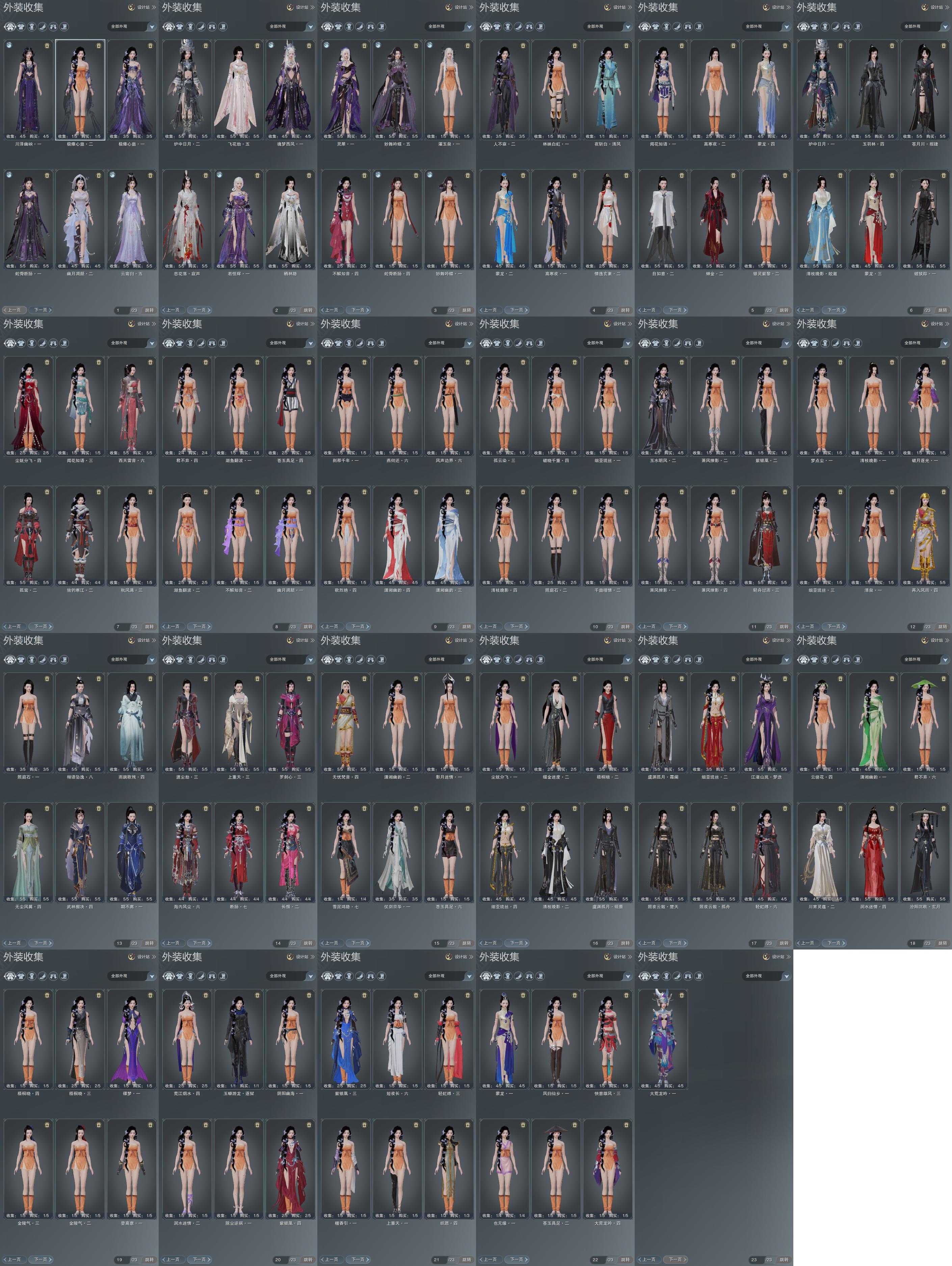 盒子:[丝路盒, 雪月盒, 喵盒, 四代七夕盒, 毒盒, 粉凤舞盒(豪)(缺白发), 黑谪仙, 白如归盒(缺黑发), 迷金盒, 蓝游园(标), 五中深绿盒, 黑狮盒, 紫桃花盒, 黑明光盒, 七七盒(缺黑发), 原色异域盒, 蓝水袖盒(缺背挂), 虎盒, 红竹影衣(豪)(缺金发), 星辰盒, 红懒猪(标), 山神盒, 二代毒盒, 兔盒, 灵龙盒, 紫沧州盒(标), 黑椿山盒(标), 白幽馥(标), 红幽馥(标), 白龙隐(豪), 黑藏袍盒(标), 游龙盒, 婚纱盒, 墨龙盒, 绿千山(豪), 白陇西(豪)(缺黑发), 蓝陇西(标), 紫沙丘(标)]