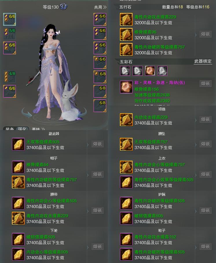 【装备】130级,五毒装备一653074,补天诀PVP419759,装备三29553,毒经PVE525874