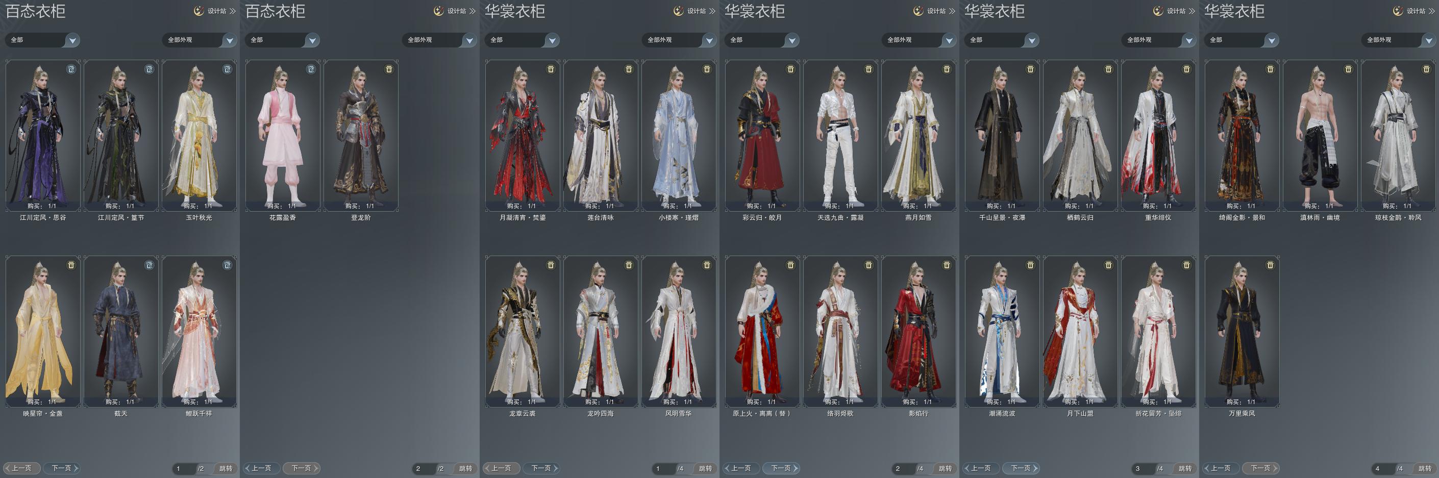 单盒成衣:[白琼枝衣, 白忘川衣, 黑傣族衣, 莲台盒衣, 九七盒衣, 镰刀衣, 红上火(替), 黄千山衣, 燕月盒衣, 墨龙盒衣, 潮涌盒衣]