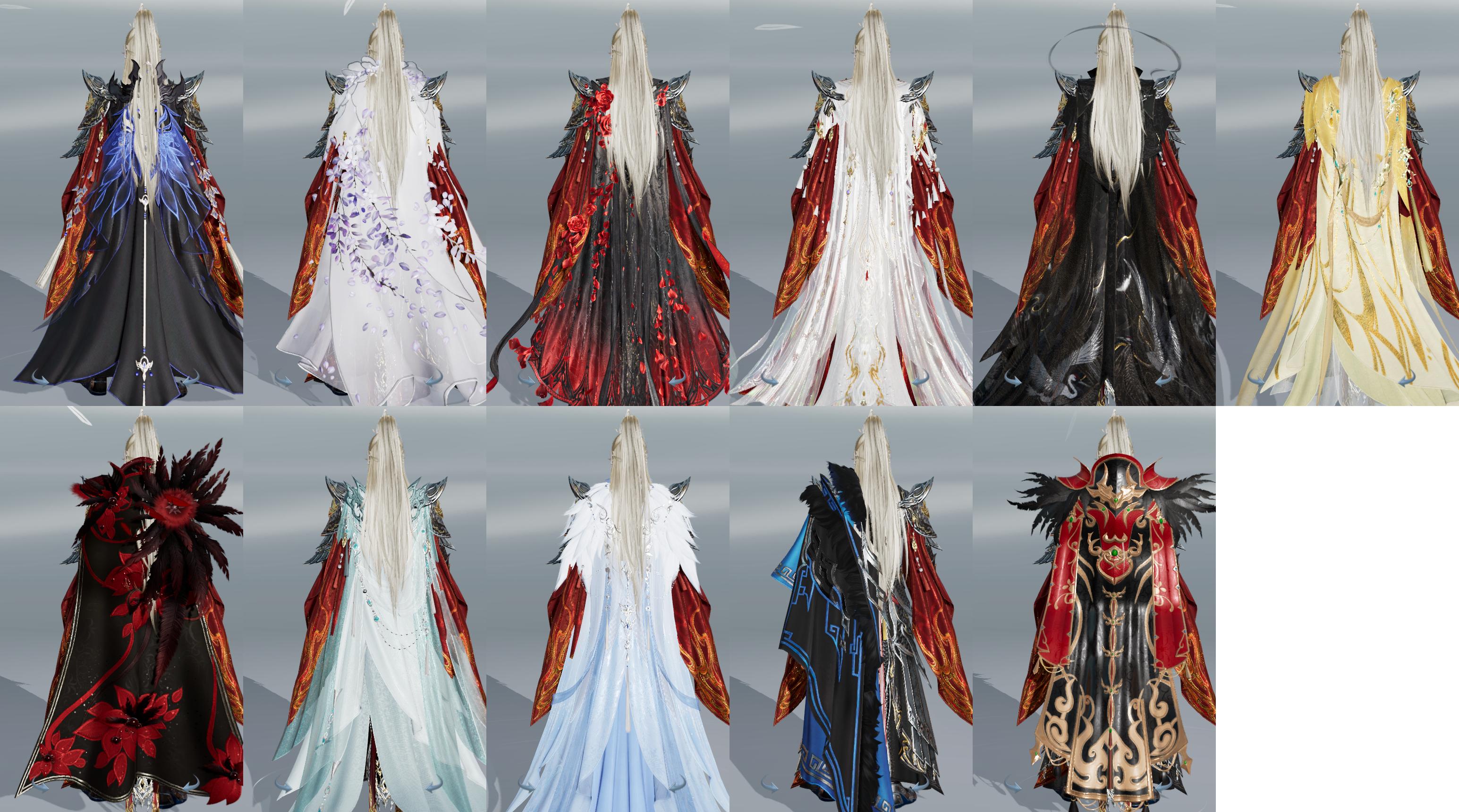 限时限量:[重华绯仪, 霆螭玄苍, 十三万资历衣, 烟花套, 十四周年工作服, 云闲归鹤, 黑红绮阁]