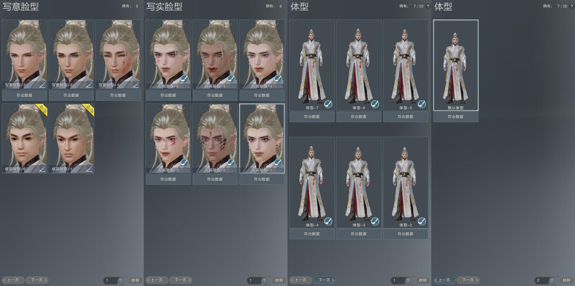 【捏脸】写意脸型5个,写实脸型6个,体型7个