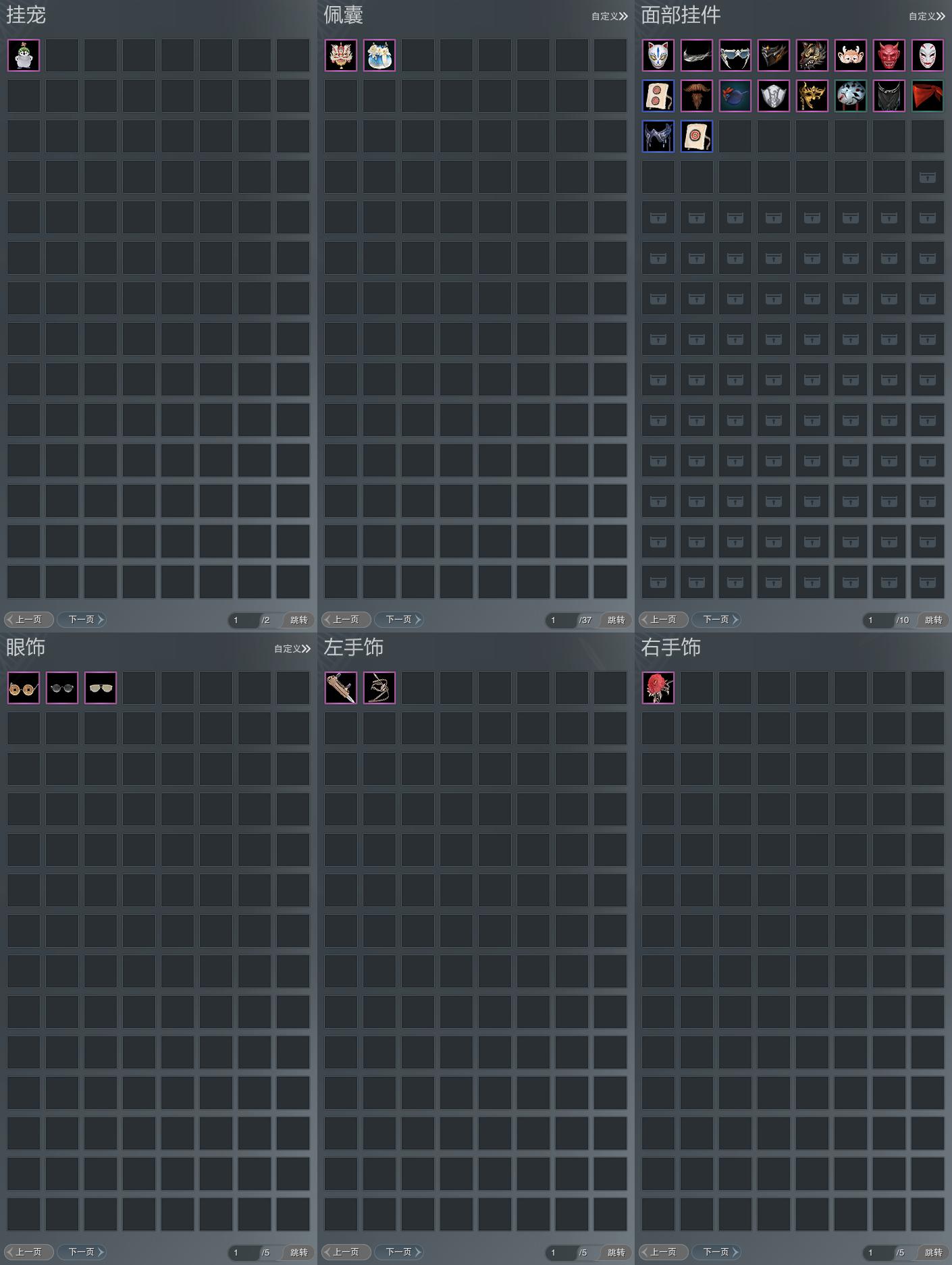 盒子:[雪月盒, 一代乘风盒, 龙吟盒(缺背挂), 咩盒, 扇盒, 络羽盒]