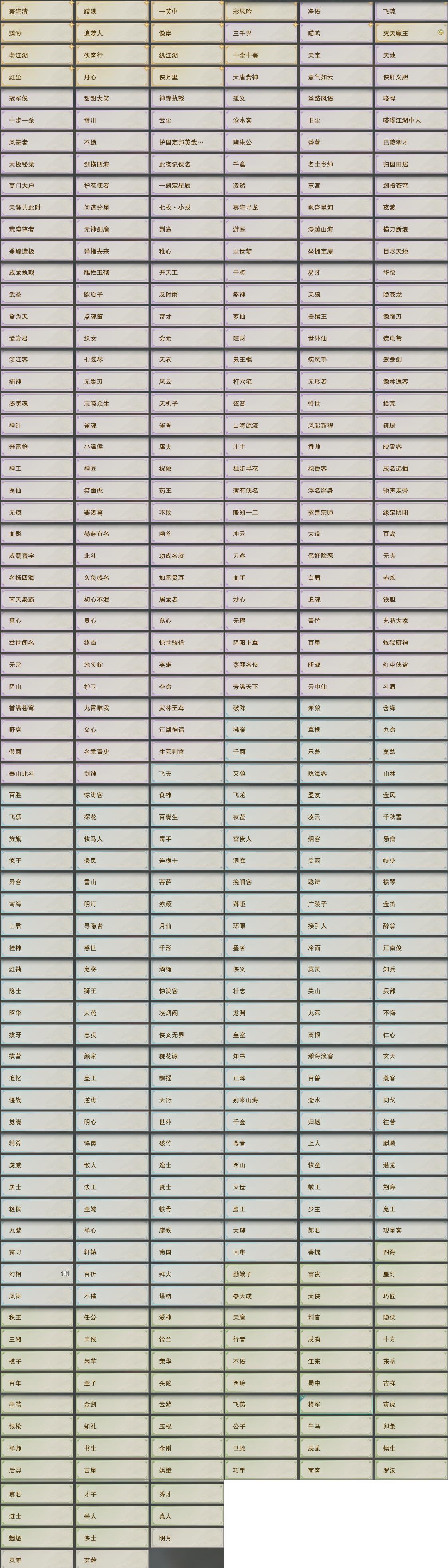 【称号】[纵江湖, 侠万里]