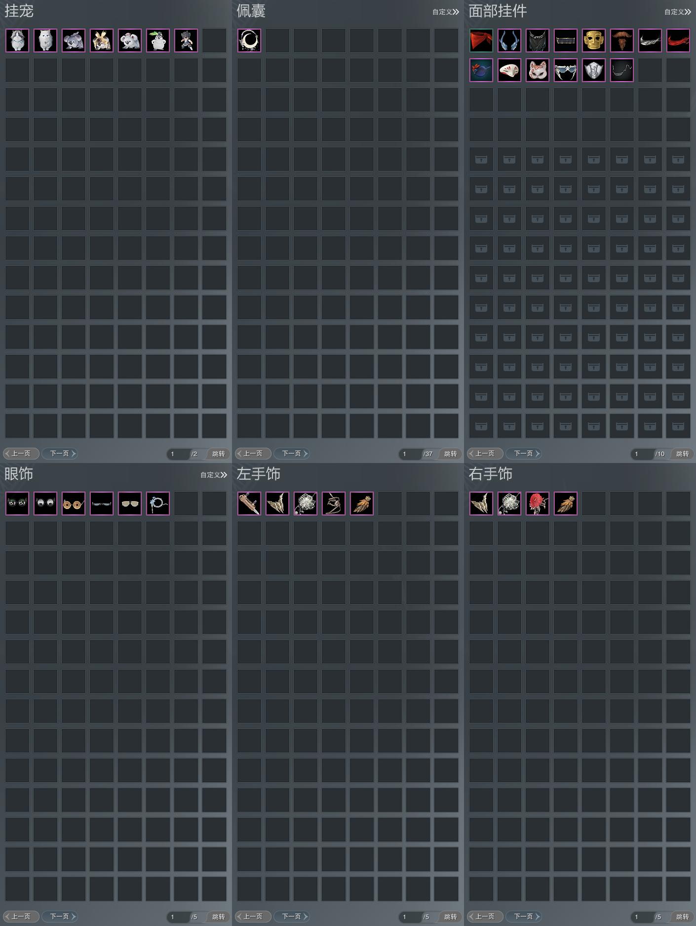 【手饰】5左,4右,[莫思归·左, 步月折芳·左, 鸮羽肃·左][莫思归·左, 步月折芳·左, 缠枝焰色·左, 鸮羽肃·左]