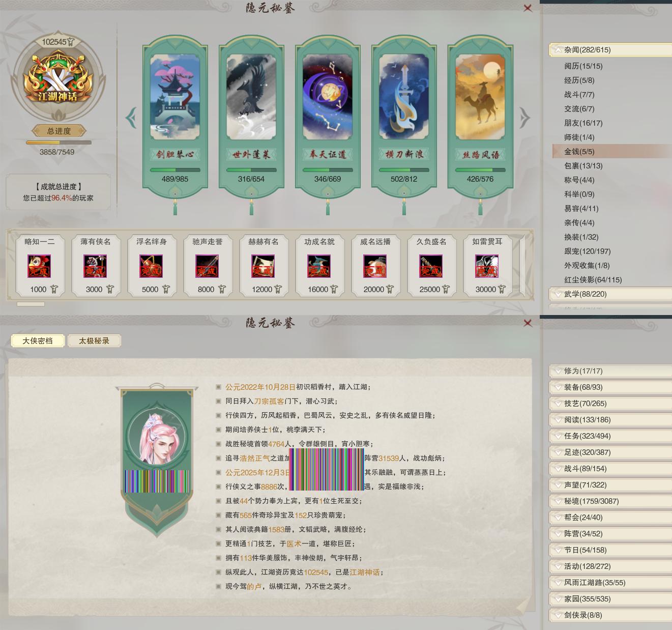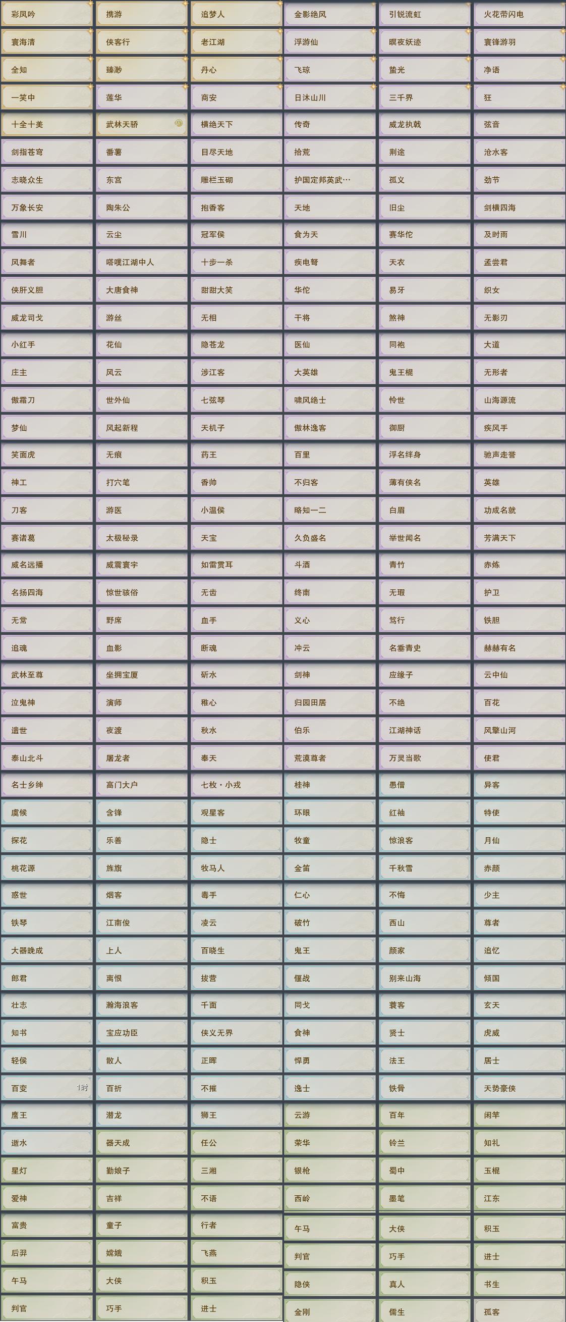 【奇遇】20个[白日梦, 平生心愿, 韶华故, 争铸吴钩, 扶摇九天, 流年如虹, 侠行囧途, 寻猫记, 茶馆奇缘, 庆舞良宵, 凌云梯, 度人心, 旧宴承欢, 镜中琴音, 泛天河, 侠者成歌, 拜春擂, 福运满载, 生花笔, 金风倾楼]