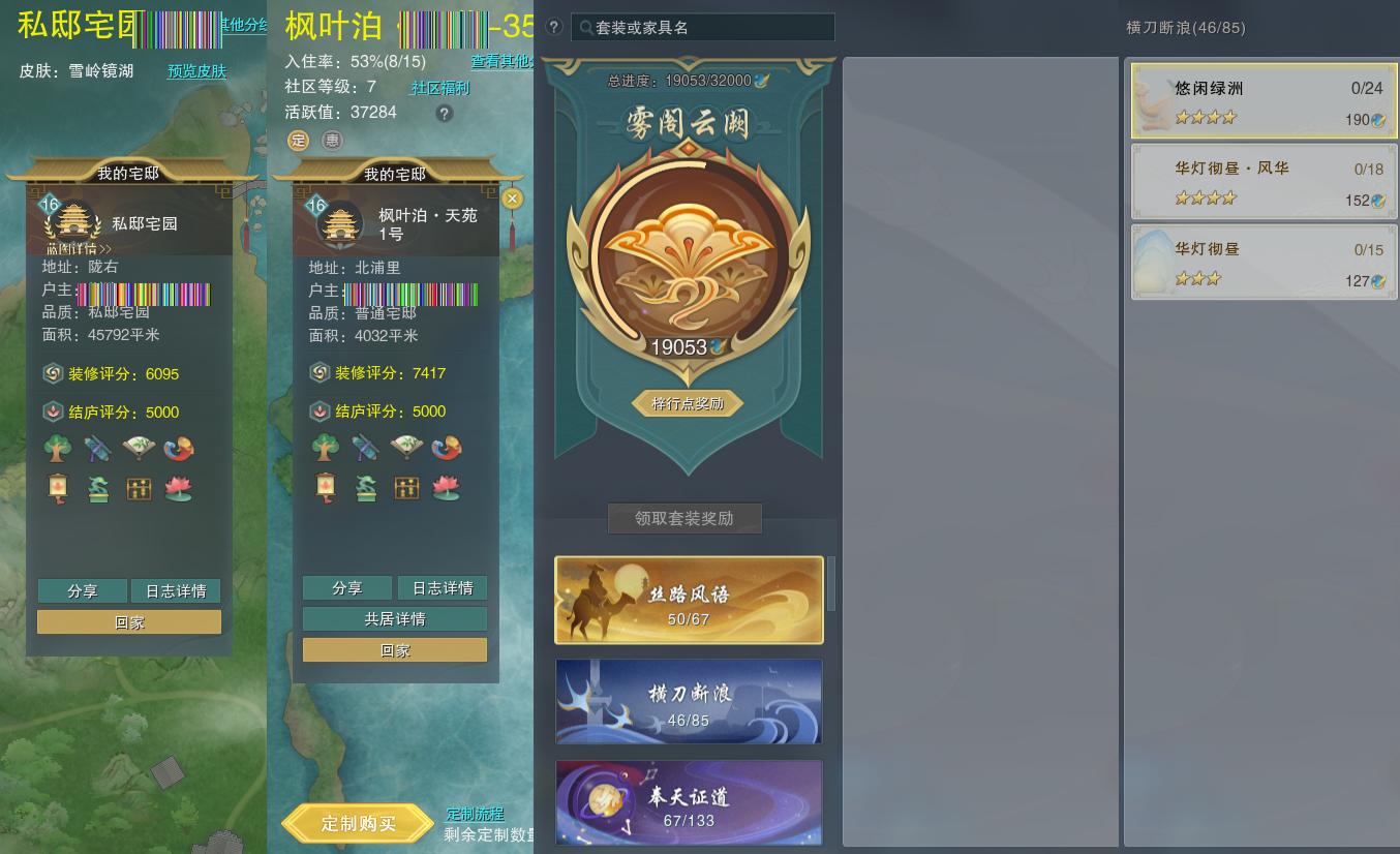 【家园】房屋等级16,社区等级了,私邸宅园,梓行点19053