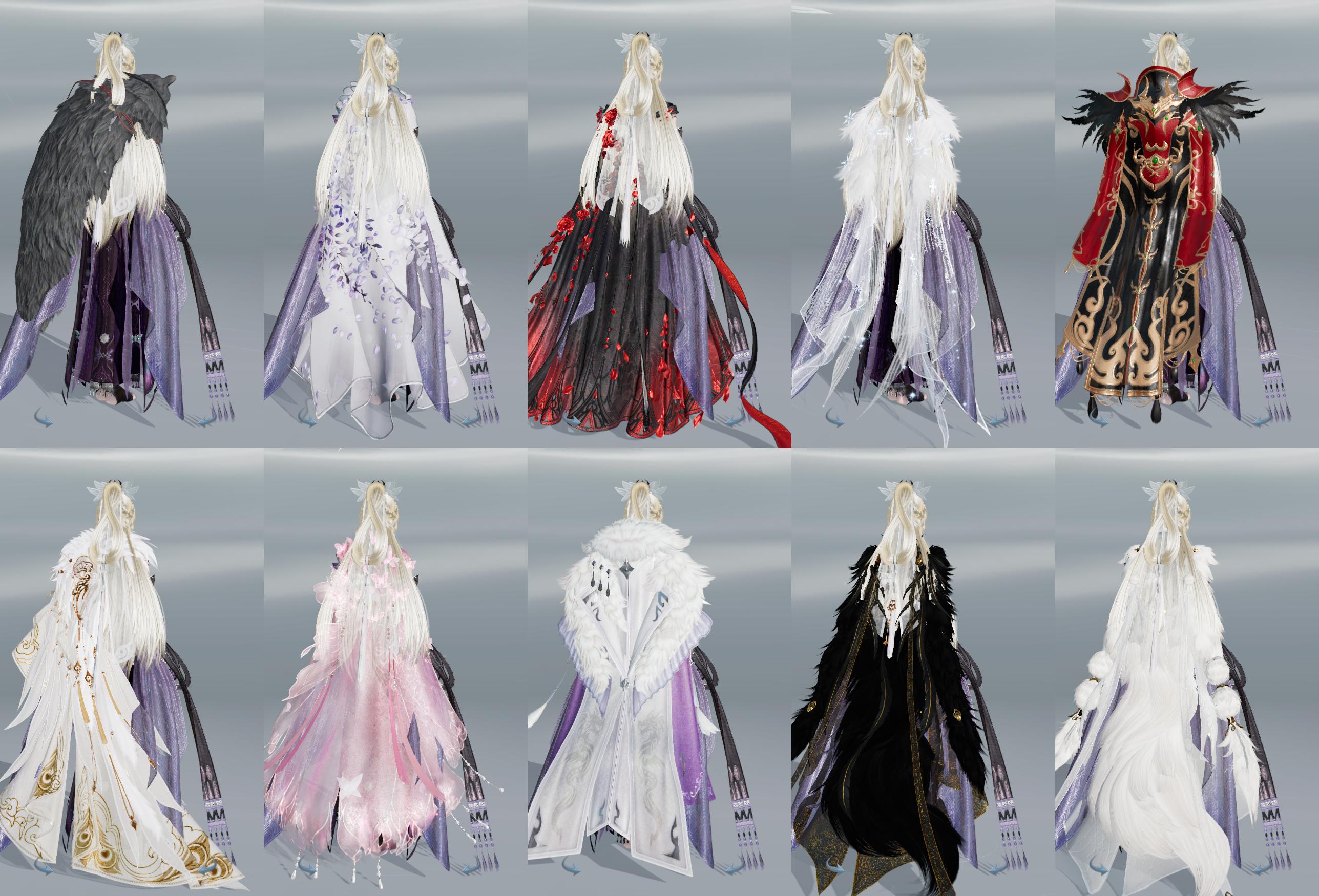 限时限量:[西津衣, 道袍, 平岸春溪, 金浮琅玉, 瀚漠民服, 雾影绛英, 烟花套, 十二周年工作服, 客行逍遥夜影, 幽涧愀兮, 白泳衣, 黑泳衣, 十三周年成衣, 粉水母, 云闲归鹤, 紫游仙, 风起苍原]
