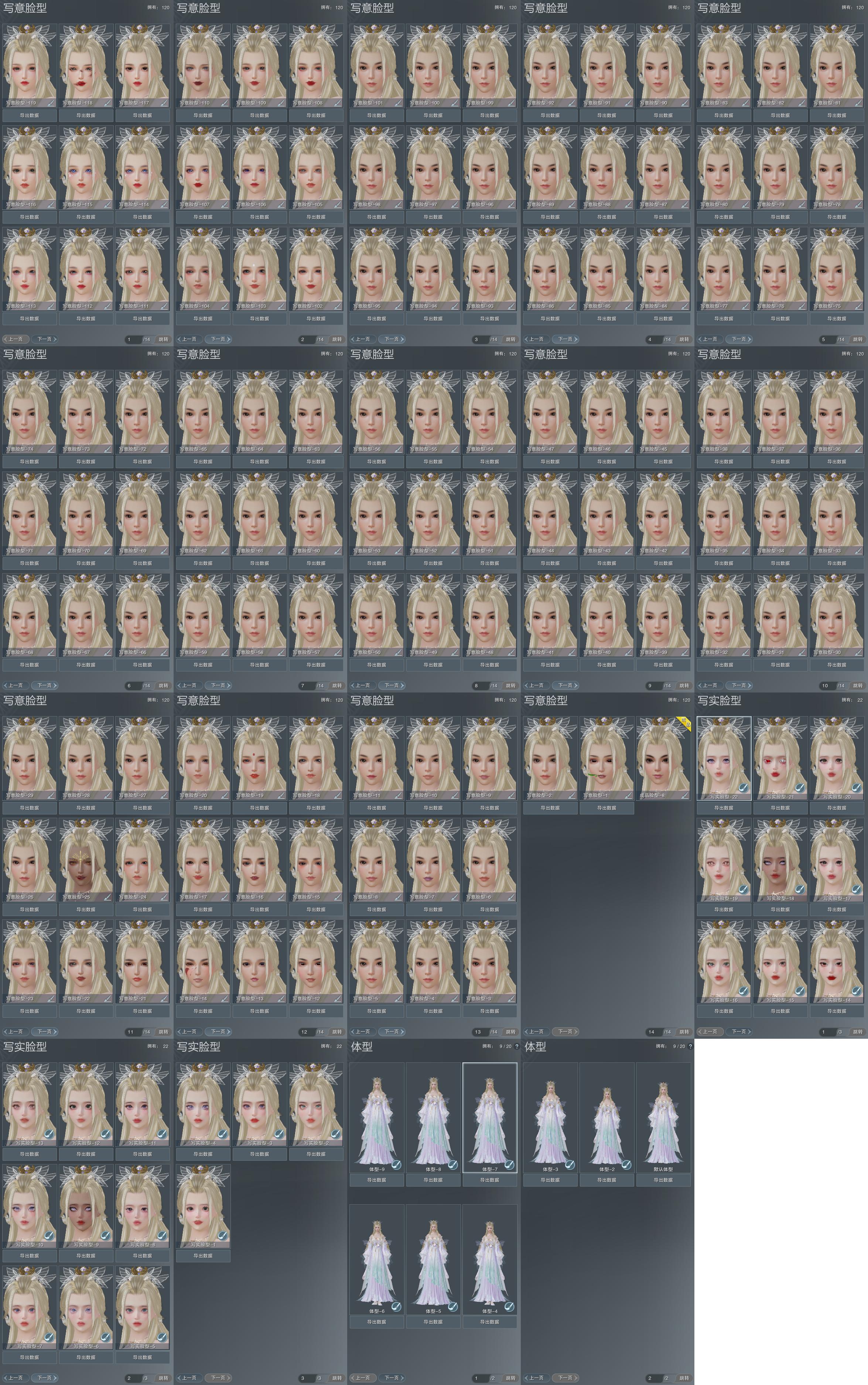 【捏脸】写意脸型120个,写实脸型22个,体型9个