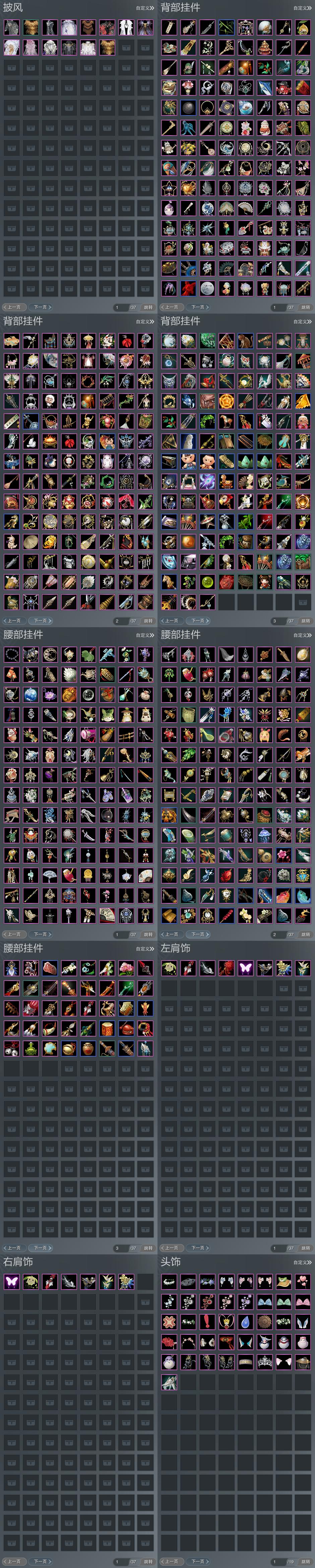 【披风】14个,[7W资历披风, 一代战令披风, 雪啸刚风, 奇遇披风, 黑狐裘, 白狐裘, 粉蝶梦披风, 玉鸾雪, 赤庭葳蕤, 哮蛮袍]
