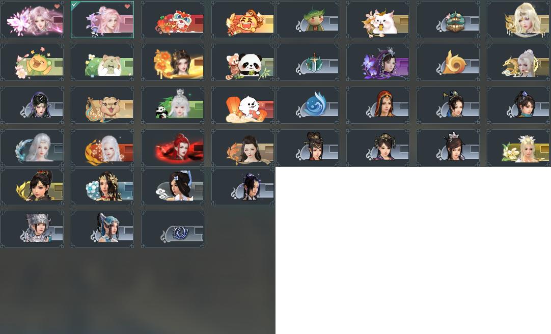 【头饰】41个,[绽春蕾白, 烟雨平生, 狐不疑心月, 狐不疑月灵, 狐不疑玉奴, 桔星高照, 心花怒放, 绽初雪蓝, 倾国色墨, 倾国色赭, 倾国色粉, 倾国色黄, 挽卿心青, 挽卿心青, 挽卿心芙, 愤愤不平, 叹为观止, 霸王别叽, 哑口无言, 蓝兔盒帽, 芊步摇传奇, 异花山丹芝, 灵机千变核桃, 灵机千变天禄, 啾啾曜铃, 啾啾断芒, 啾啾铃凤, 啾啾栖霞, 黑蛇头饰左, 黑蛇头饰右, 黑蛇头饰, 鎏纹玄锦带, 璨冠, 怒雪寒鸦明光, 黑谪仙帽]