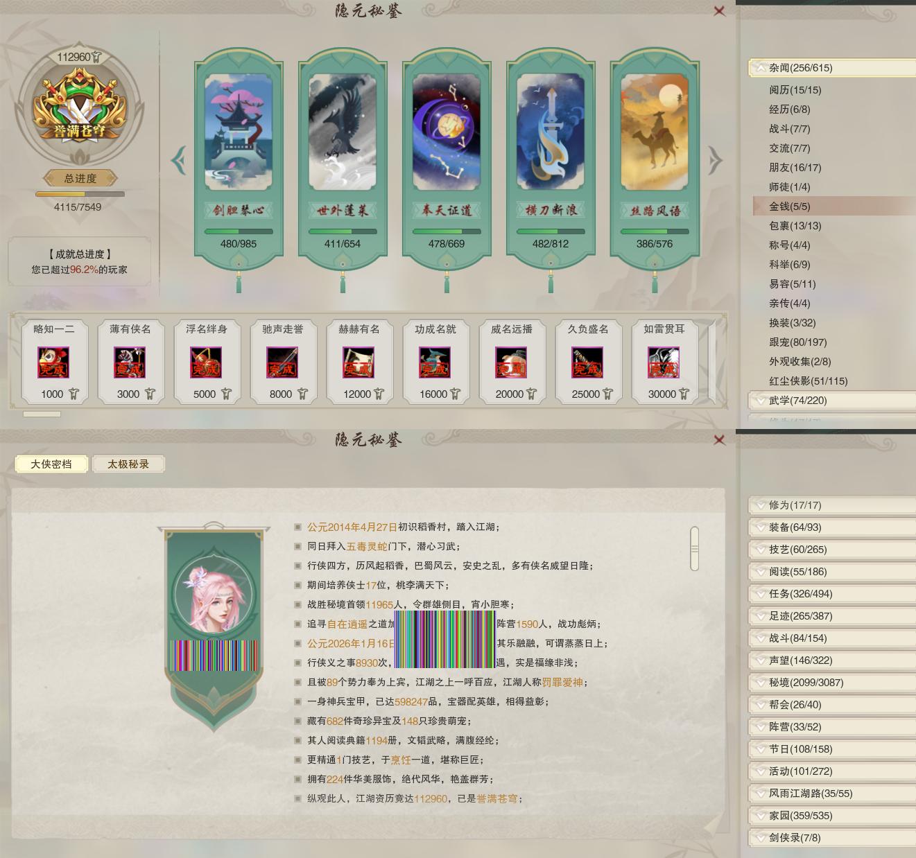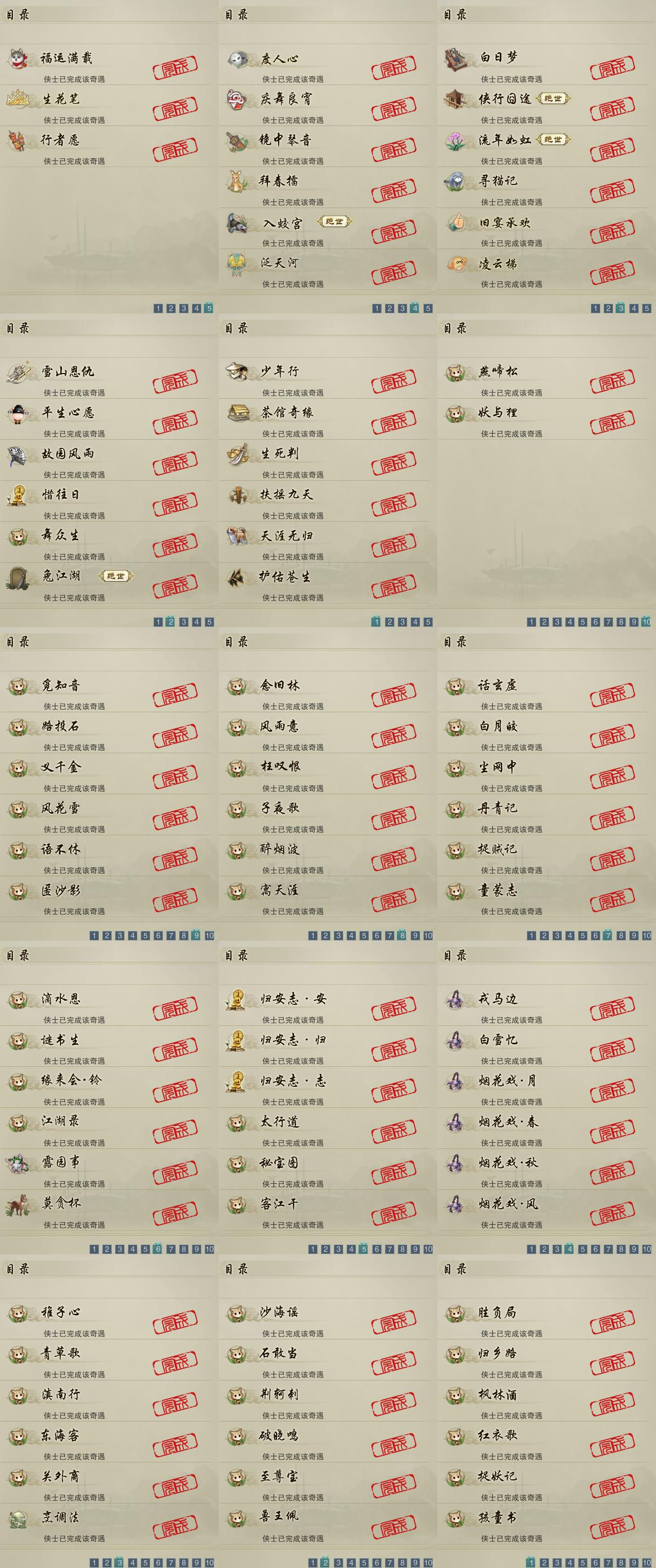 【奇遇】26个[白日梦, 天涯无归, 雪山恩仇, 平生心愿, 兔江湖, 惜往日, 少年行, 护佑苍生, 故园风雨, 扶摇九天, 流年如虹, 舞众生, 侠行囧途, 寻猫记, 茶馆奇缘, 庆舞良宵, 入蛟宫, 生死判, 凌云梯, 度人心, 旧宴承欢, 镜中琴音, 泛天河, 拜春擂, 福运满载, 生花笔]