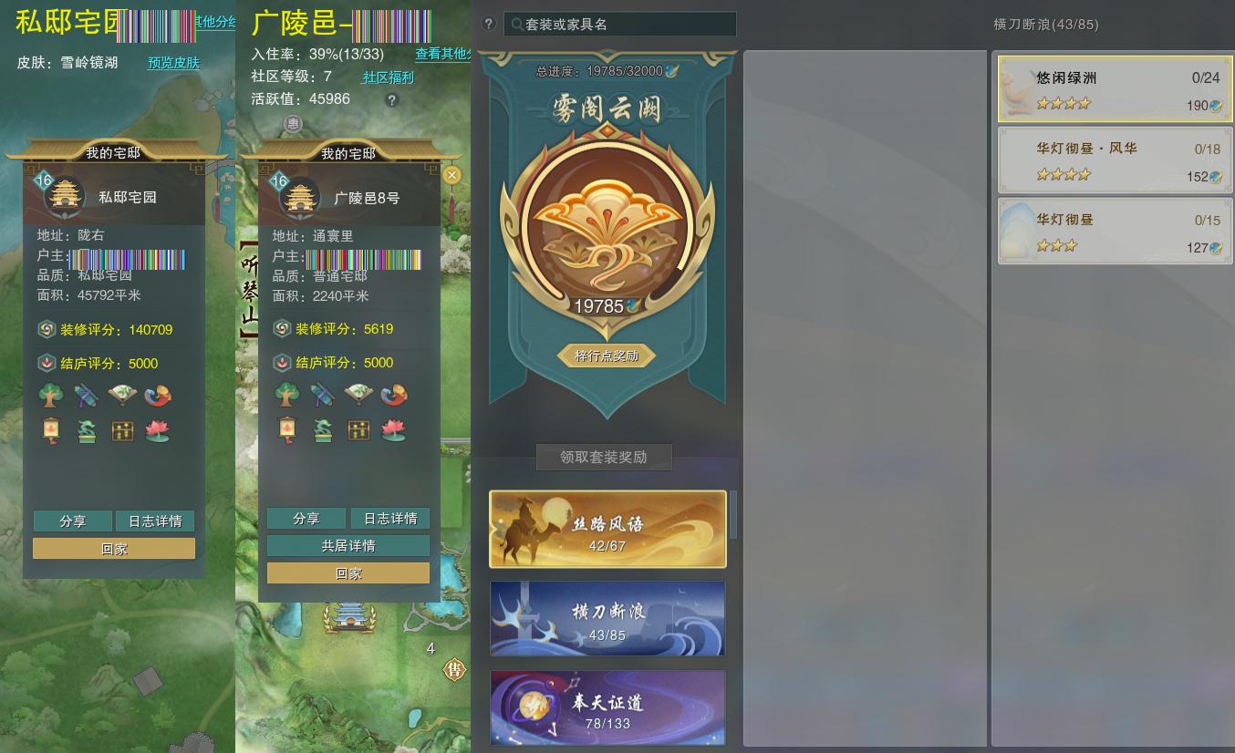 【家园】房屋等级16,社区等级了,私邸宅园,梓行点19785