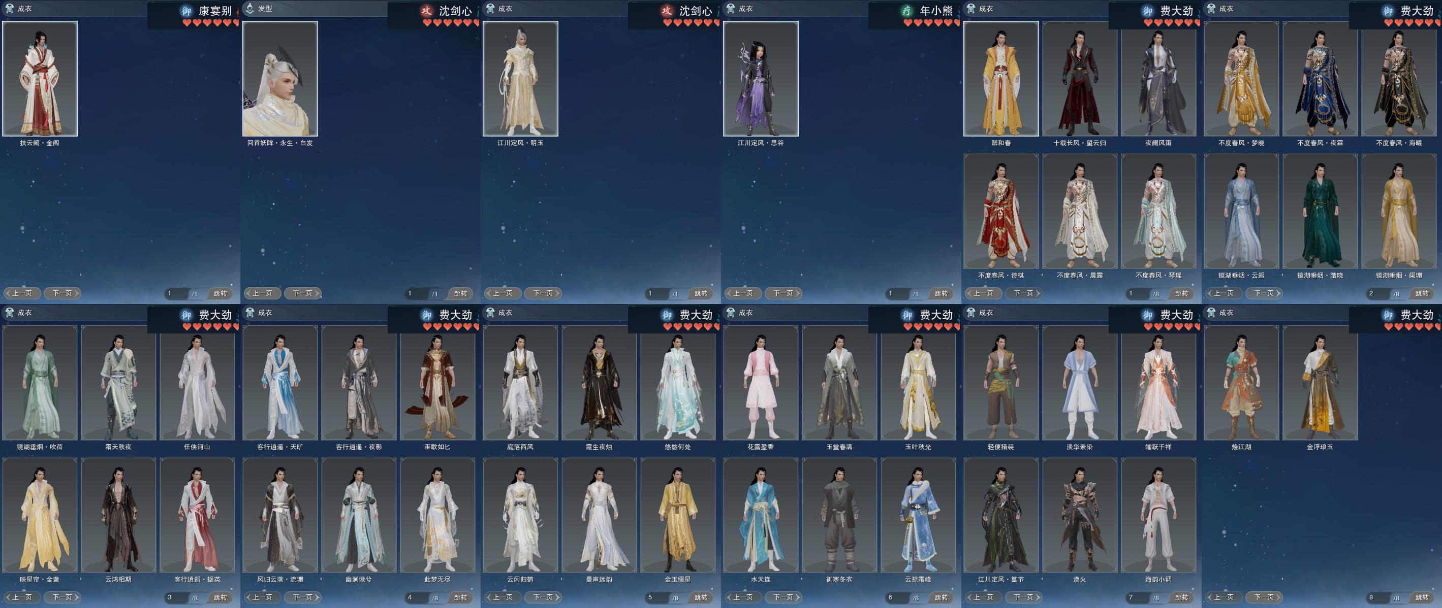 单盒成衣:[粉如归衣, 蓝游园衣, 紫游园衣, 绿游园衣, 红游园衣, 粉游园衣, 白游园衣, 白六七盒衣, 药盒衣, 黑八中衣, 白幽馥衣替, 香兰盒衣, 蓝蝴蝶衣, 重花游衣替, 绿浮光]