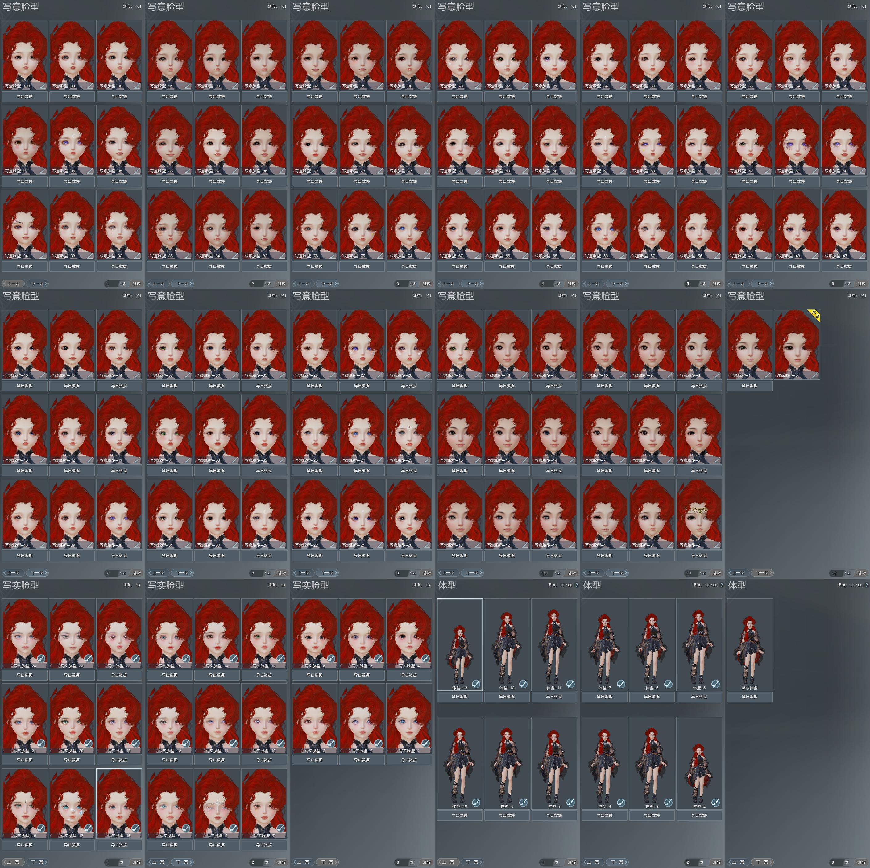 【捏脸】写意脸型101个,写实脸型24个,体型13个