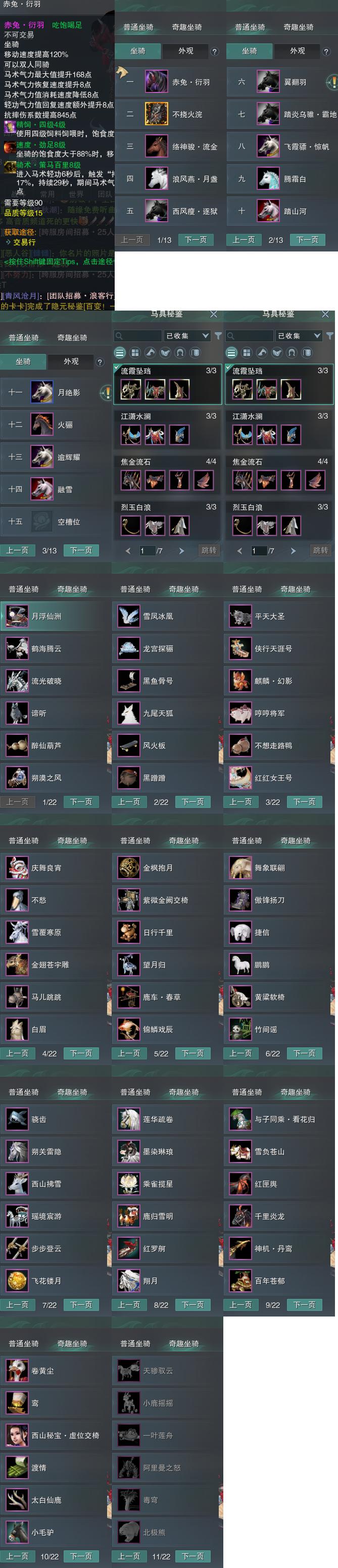 【坐骑】14个[踏炎霸地, 西风瘦逐狱, 恶人火兽, 飞霞骠惊帆, 劲足赤兔衍羽, 络神骏流金]