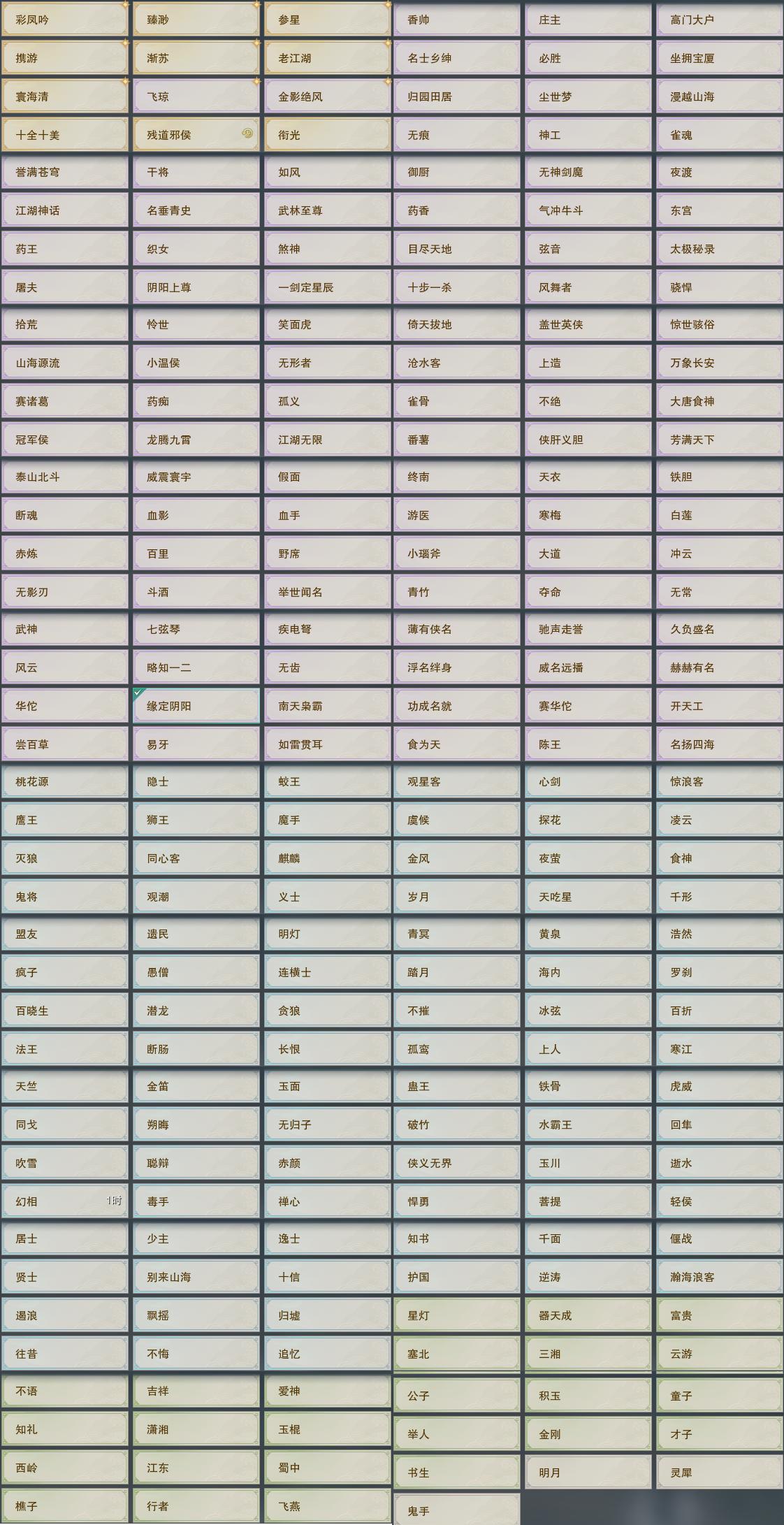 【奇遇】12个[平生心愿, 惜往日, 三尺青锋, 扶摇九天, 茶馆奇缘, 寻猫记, 庆舞良宵, 凌云梯, 度人心, 旧宴承欢, 拜春擂, 福运满载]