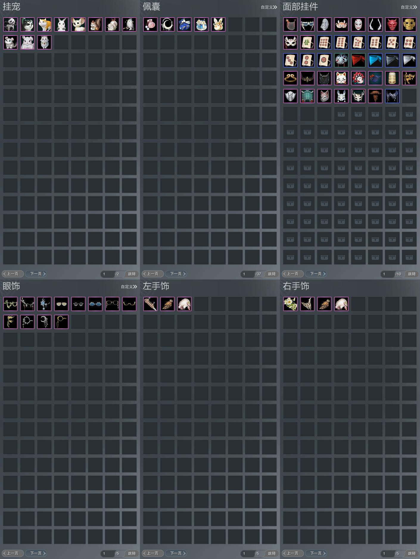【手饰】3左,4右,[鸮羽肃·左, 轻绒爪·扑雪·左][点点晴·左, 莫思归·左, 鸮羽肃·左, 轻绒爪·扑雪·左]