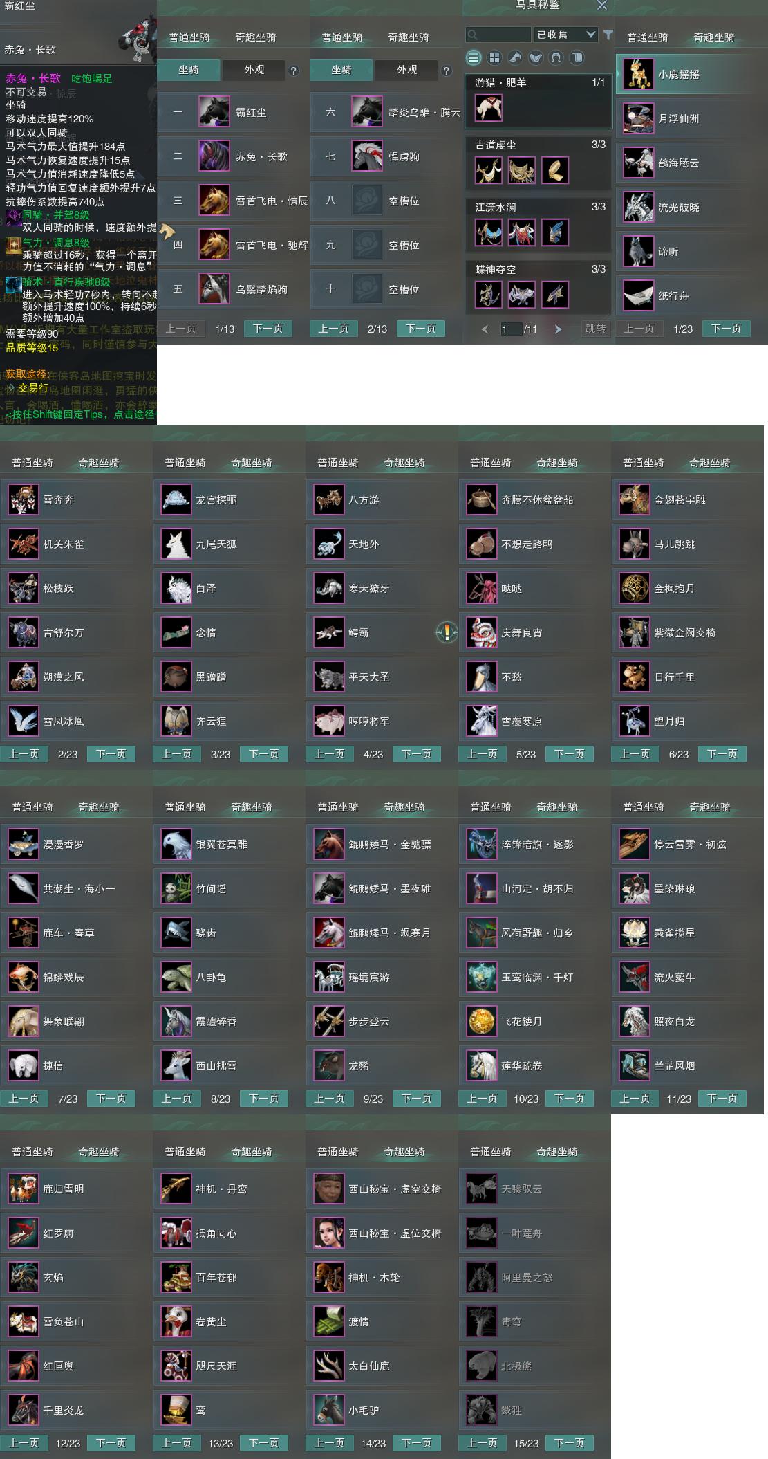 【坐骑】7个[踏炎腾云, 赤兔长歌, 霸红尘, 雷首飞电惊辰, 雷首飞电驰辉, 乌鬃踏焰驹]