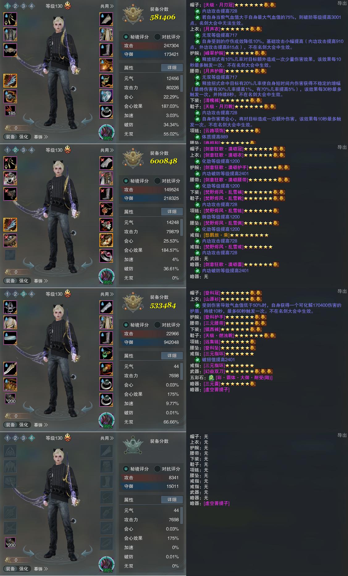 【装备】130级,焚影圣诀PVE581406,焚影圣诀PVP600848,明尊琉璃体PVE533484,装备四0