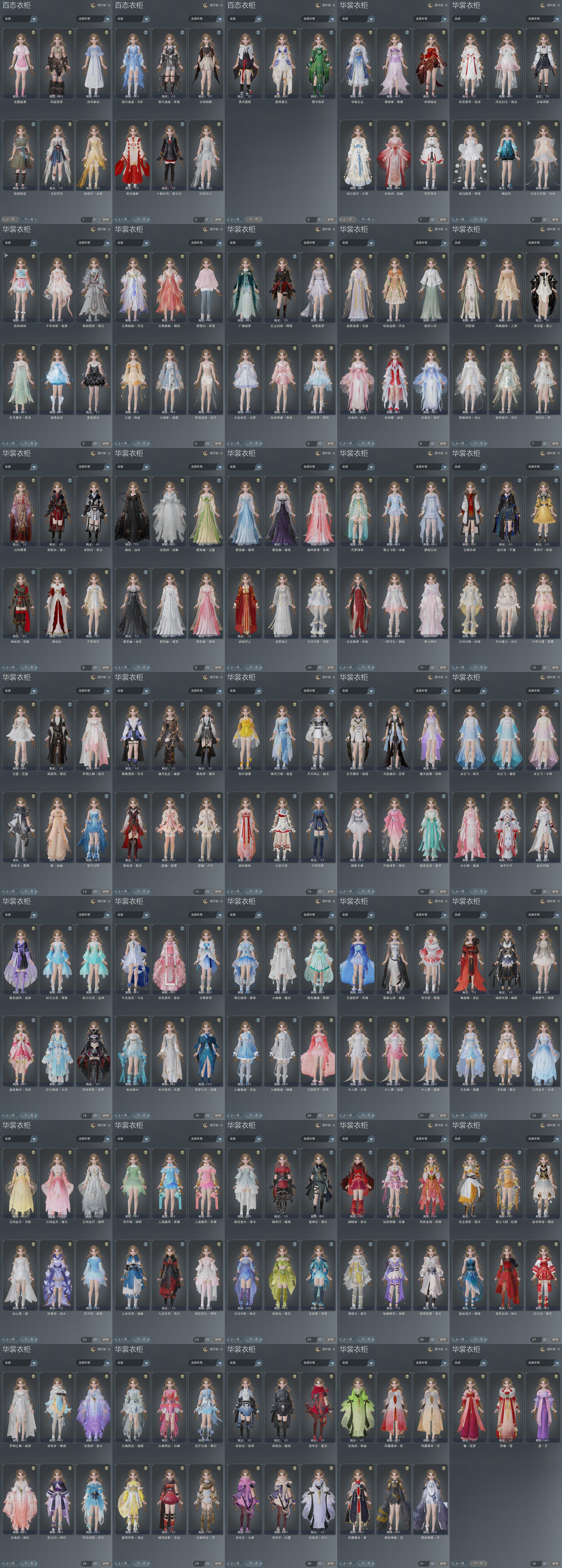 复刻:[白白菜, 锦衣行夜疾, 沧海间湘月, 沧海间琼台, 贺华岁霜降, 罗姆弦月, 天河清晏, 天河枕星, 雪山冰魄, 蓝二公主, 天选黄无色, 繁故幽, 夜斩白孤云, 夜斩白暮长, 沧海间跃鲤, 一梦飘摇, 五期福袋成衣, 粉仙侣, 复刻紫香凝, 折花留芳坠绯, 黄云霆]
