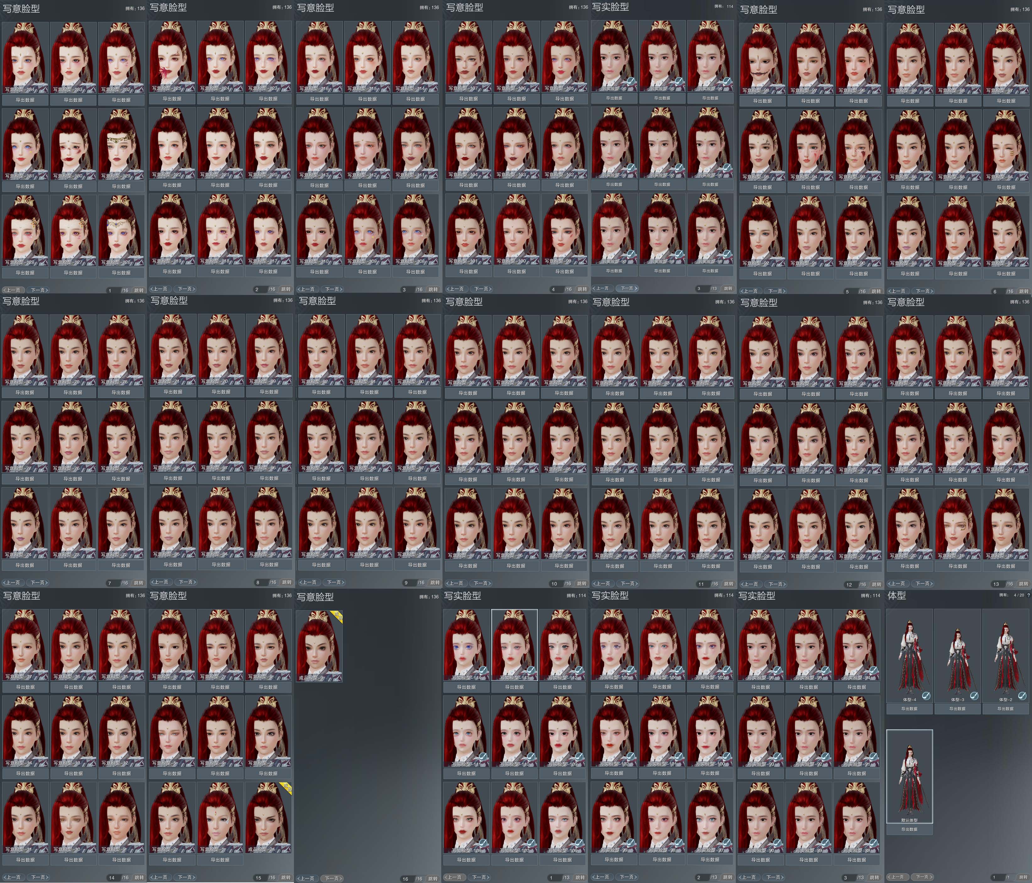 【捏脸】写意脸型136个,写实脸型114个,体型4个