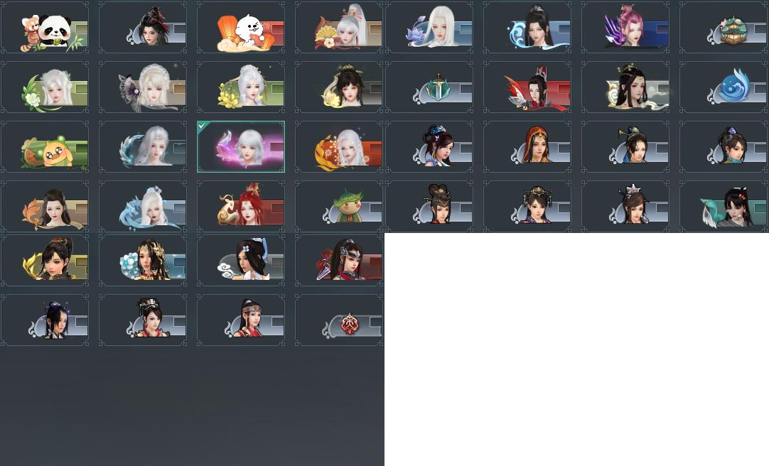 盒子:[丝路盒, 雪月盒, 秃盒, 狄盒(缺腰挂), 二代花朝盒, 红盒, 红曲塘盒, 猪盒, 二七盒, 四代七夕盒, 粉盒, 二代粉盒, 红腿盒(缺白发), 黑凤舞盒(标), 蓬莱盒, 一代重阳盒, 青盒, 唐盒, 白盒, 一代花朝白盒, 棉袄盒, 樱花盒, 沧海盒, 唐风玉壶盒(缺白发), 黑四元盒, 原色桃花盒, 竹笛盒, 小熊盒, 灰竹影(标), 花滑盒, 紫忘川盒, 山神盒, 二代毒盒, 兔盒, 卿酒盒, 踏青盒, 灵龙盒, 蓝兔盒, 策二盒, 游龙盒, 茄盒, 燕月盒, 仙剑盒, 白千山(豪)(缺黑发), 蓝寻香(豪)]