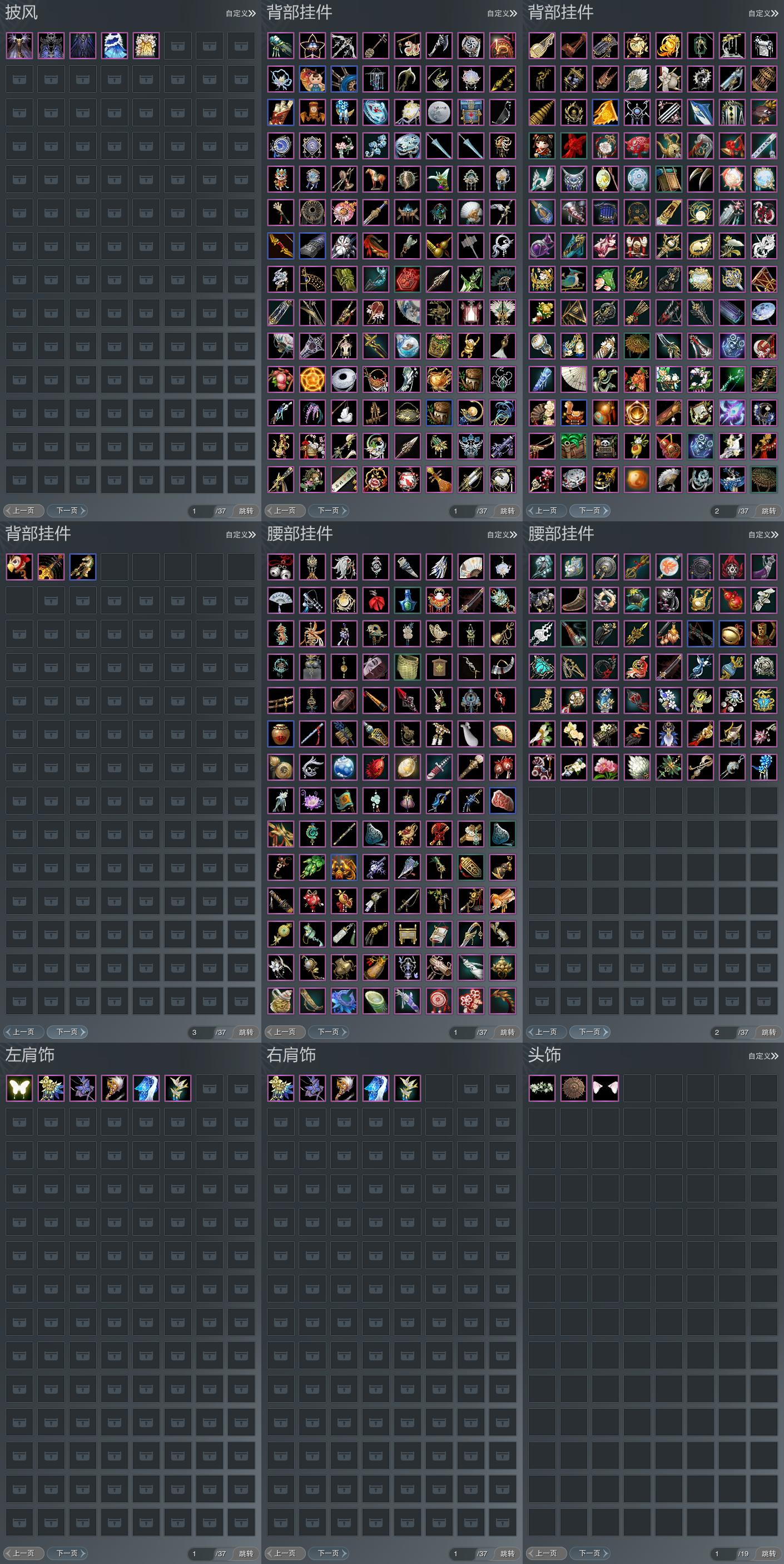 【肩饰】6左,5右,[觅花踪·黄云·左, 虞渊引梦·左, 云锦梦华·左][虞渊引梦·右, 云锦梦华·右]