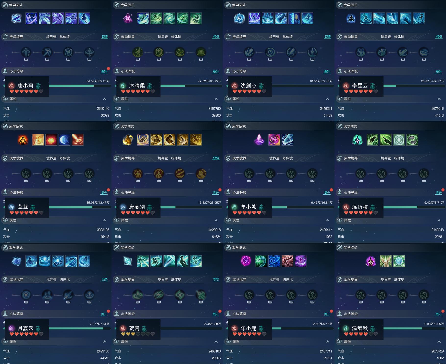 【同伴】唐小珂81级境界壹,沐晴柔81级境界壹,沈剑心81级境界壹,李星云79级境界壹,茸茸志78级境界壹,康宴别75级境界壹,年小熊71级境界壹,温折枝66级境界壹,月嘉禾65级境界壹,贺闲志63级境界壹,年小鹿62级境界壹,温辞秋58级境界壹