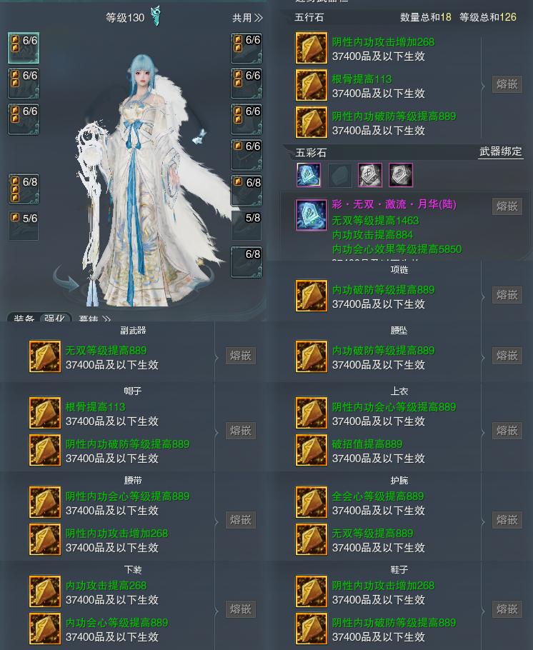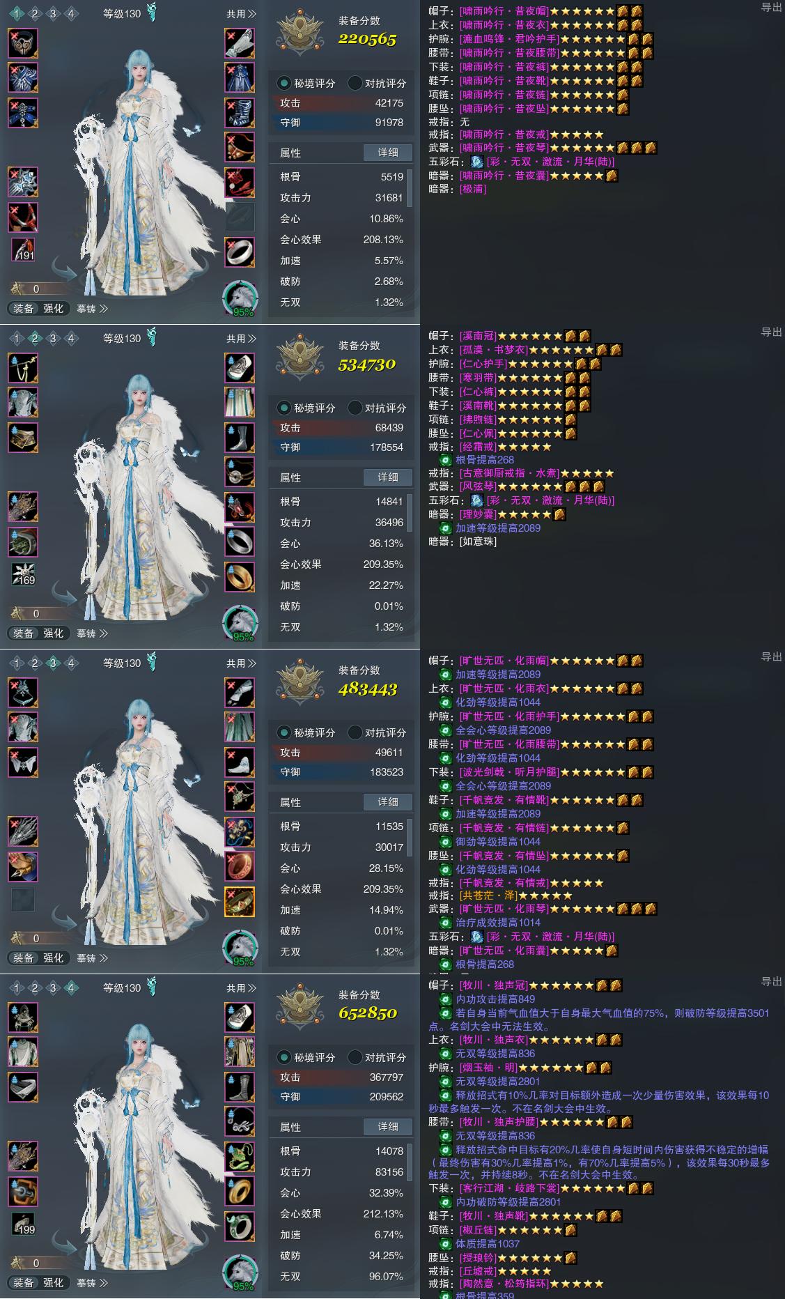 【装备】130级,装备一220565,长歌装备二534730,相知PVP483443,莫问PVE652850