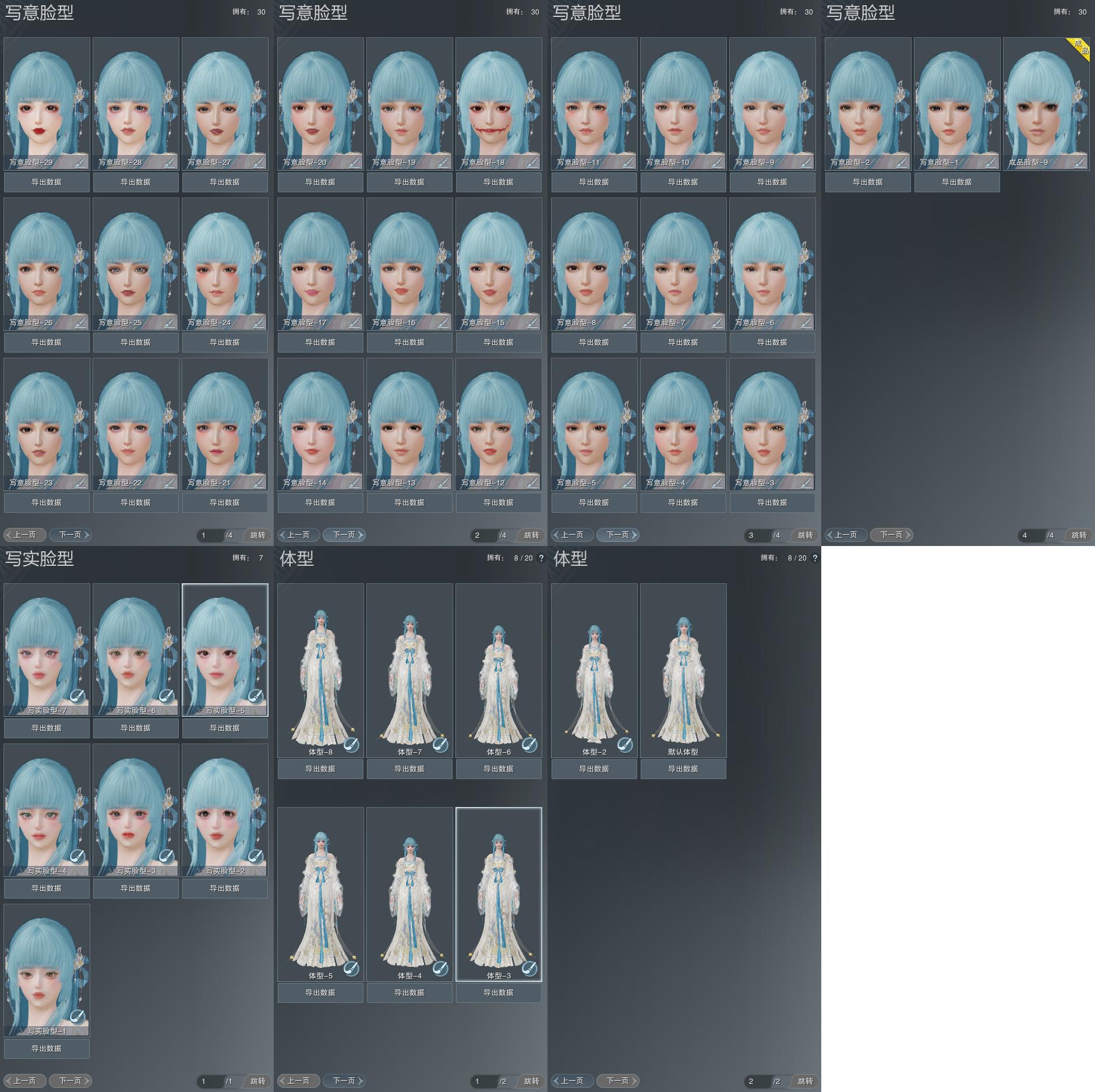 【捏脸】写意脸型30个,写实脸型7个,体型8个
