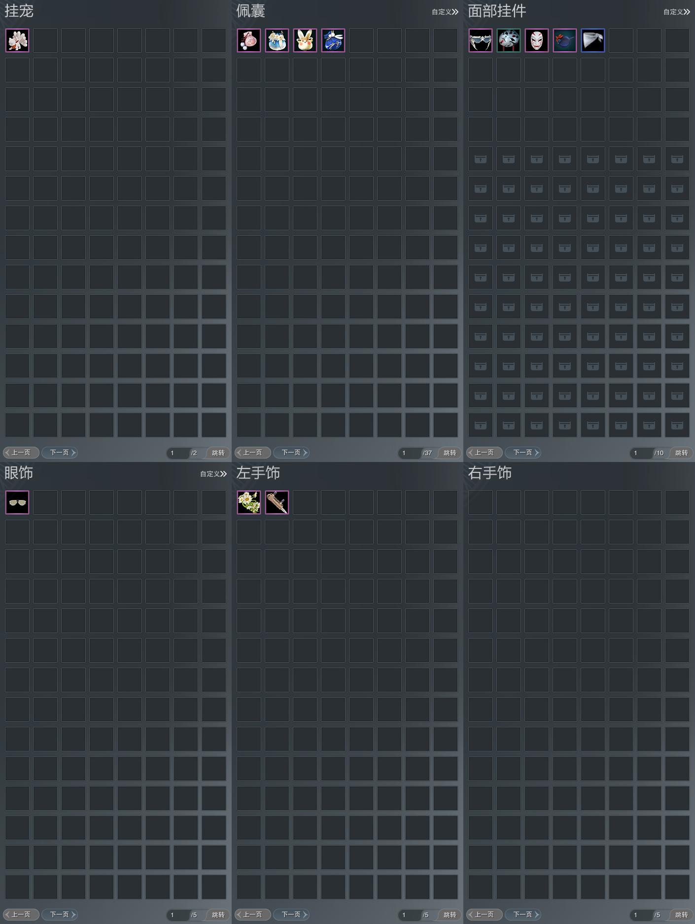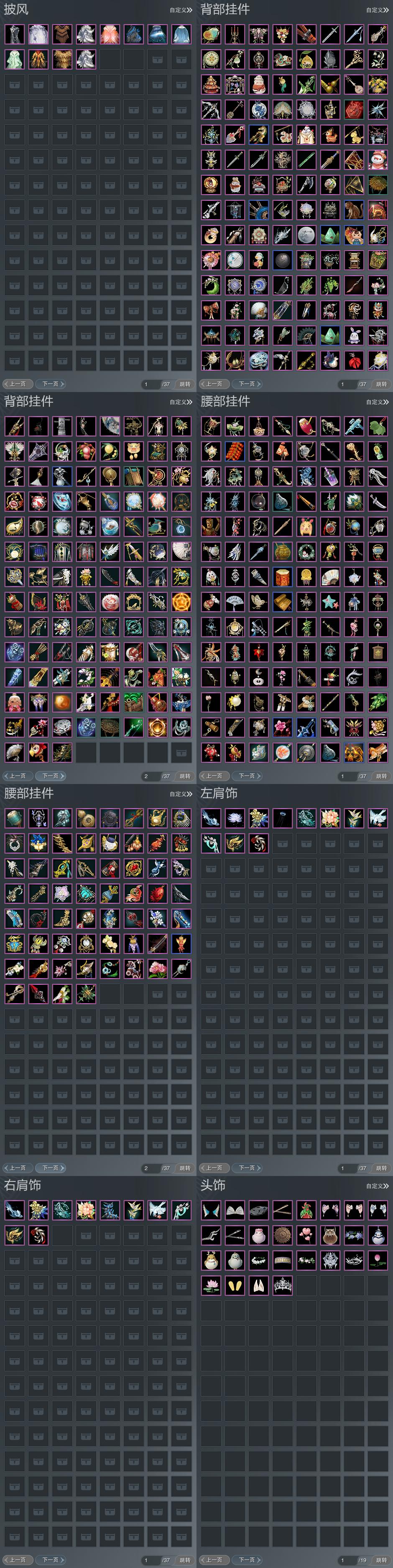 【肩饰】11左,10右,[双鱼曳波·极乐·左, 绝代仙·千幻·左, 海升霞蔚·霁景·左, 陌上窈窕·左, 鹤影天青·左, 盘龙凤舞·左][陌上窈窕·右, 玄天覆雪·右, 鹤影天青·右, 盘龙凤舞·右]