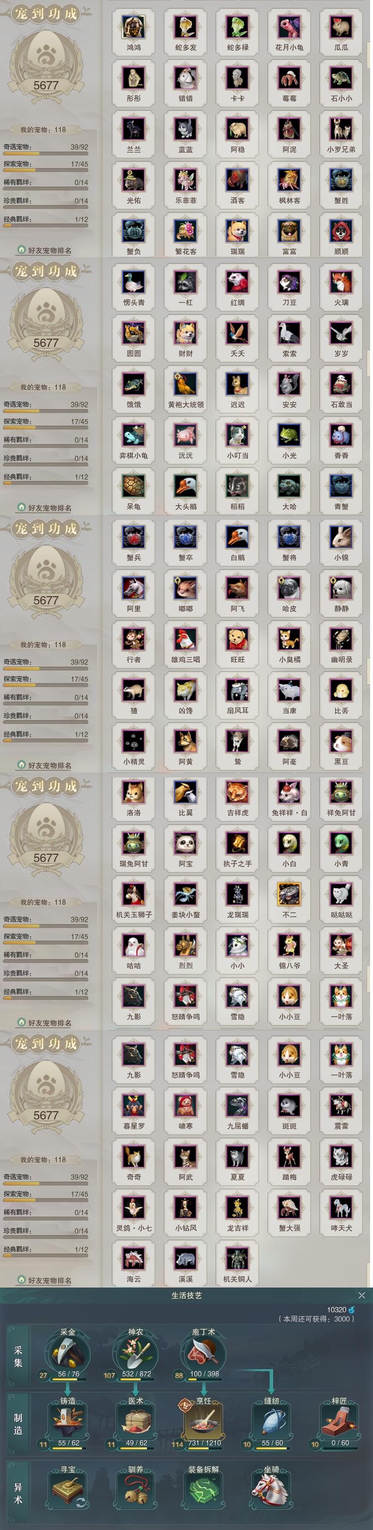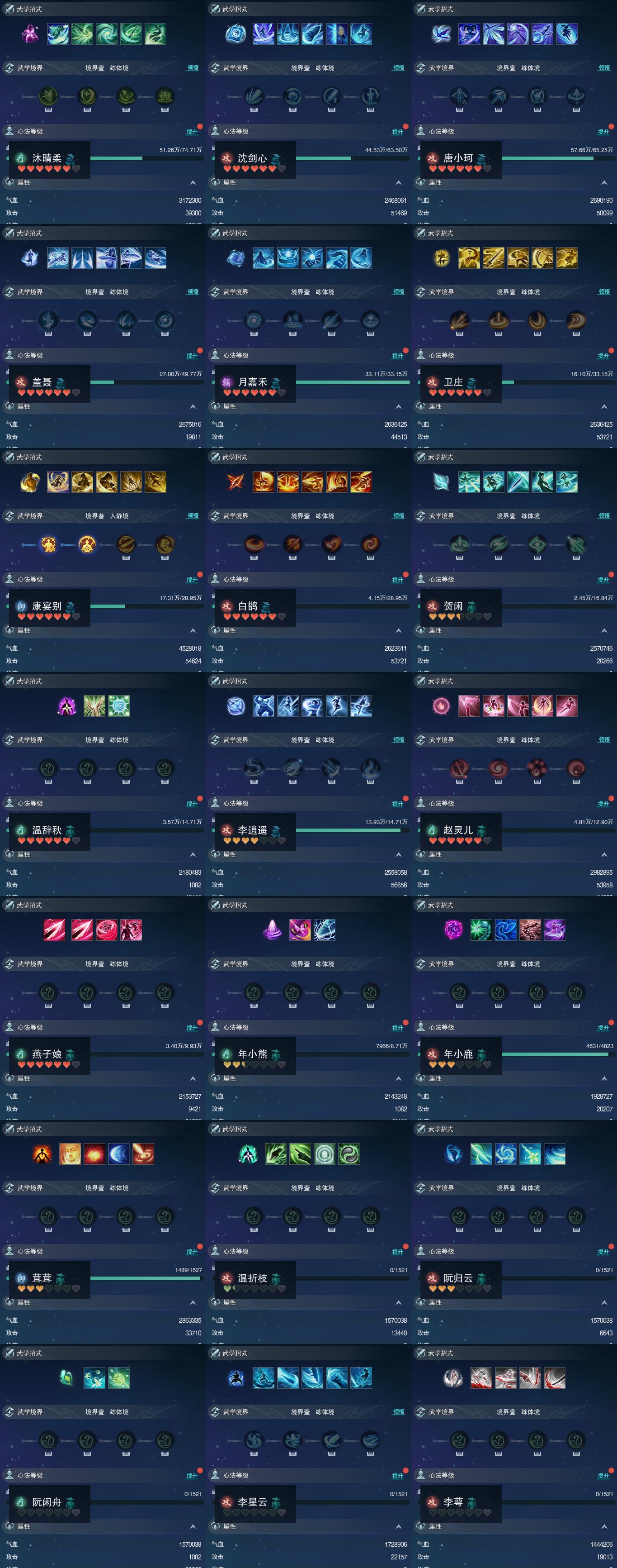 【同伴】沐晴柔82级境界壹,沈剑心82级境界壹,唐小珂81级境界壹,盖聂79级境界壹,月嘉禾76级境界壹,卫庄意76级境界壹,康宴别75级境界叁,白鹊慈75级境界壹,贺闲志71级境界壹,温辞秋70级境界壹,李逍遥70级境界壹,赵灵儿69级境界壹,燕子娘67级境界壹,年小熊66级境界壹,年小鹿42级境界壹,茸茸志4级境界壹,温折枝1级境界壹,阮归云1级境界壹,阮闲舟1级境界壹,李星云1级境界壹,李萼志1级境界壹