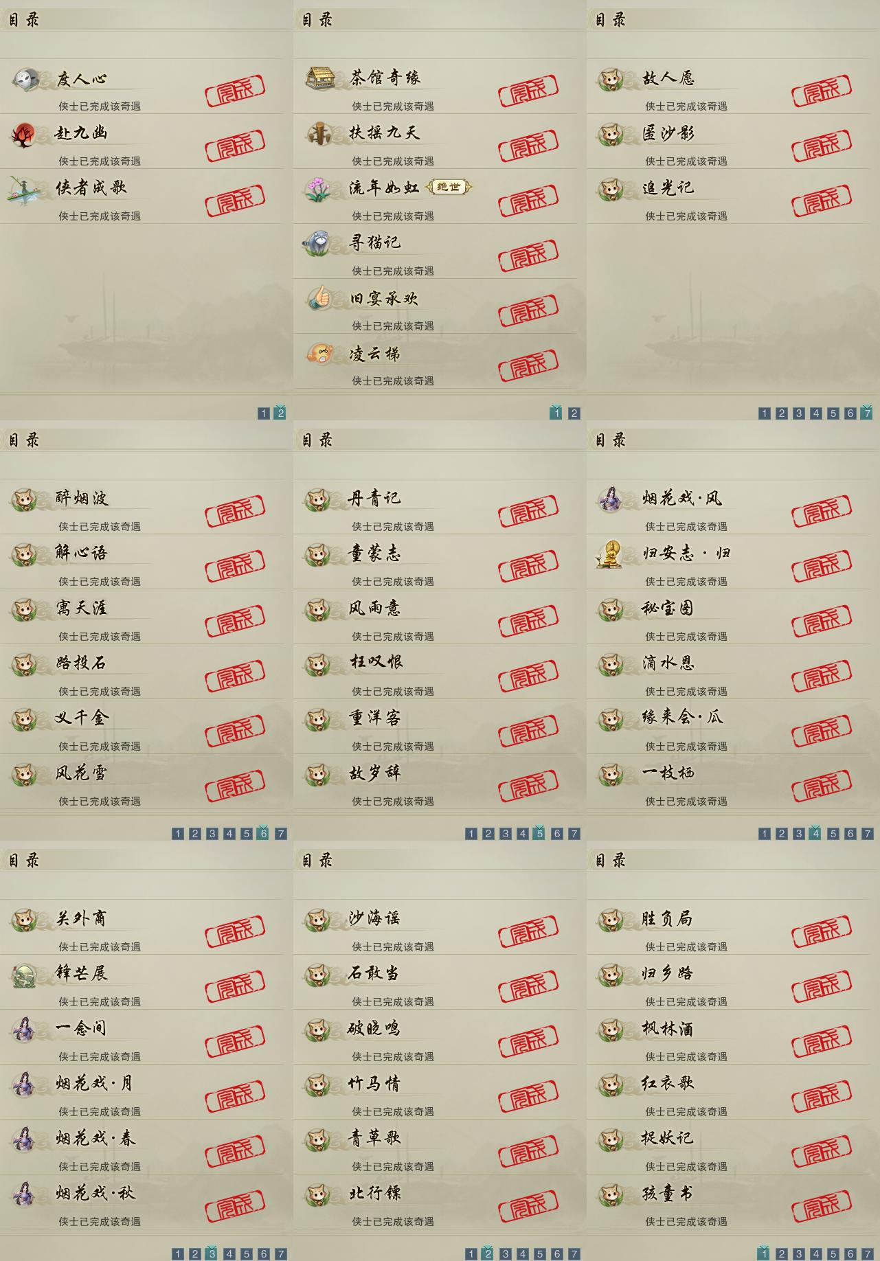 【奇遇】9个[扶摇九天, 流年如虹, 茶馆奇缘, 寻猫记, 凌云梯, 度人心, 赴九幽, 旧宴承欢, 侠者成歌]