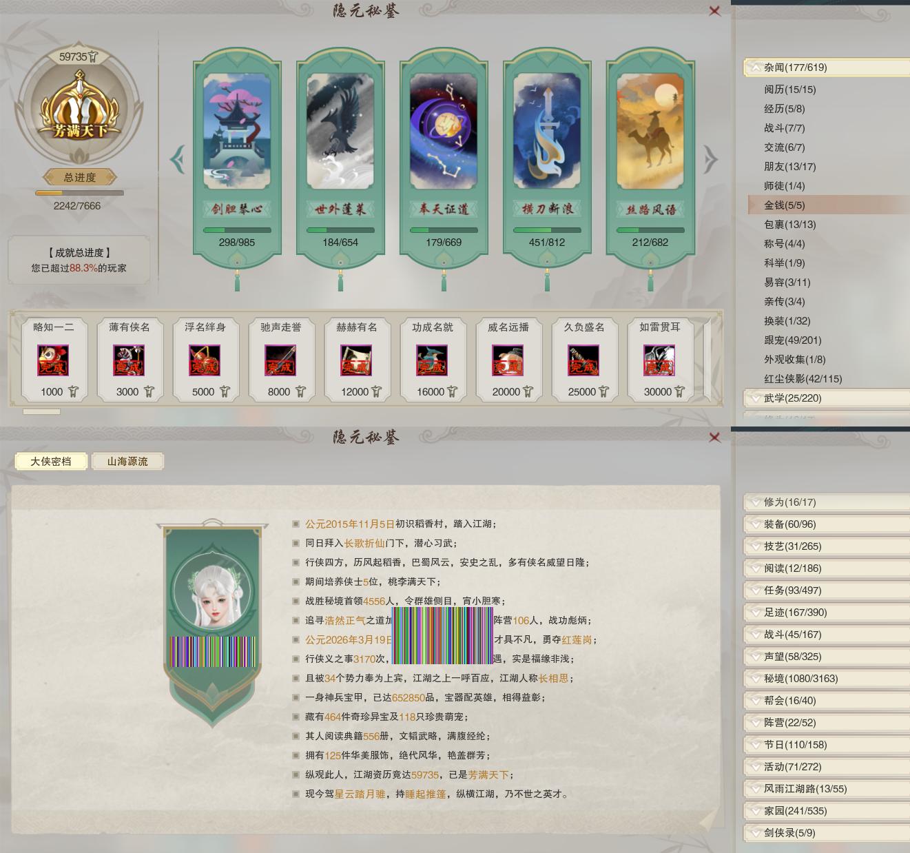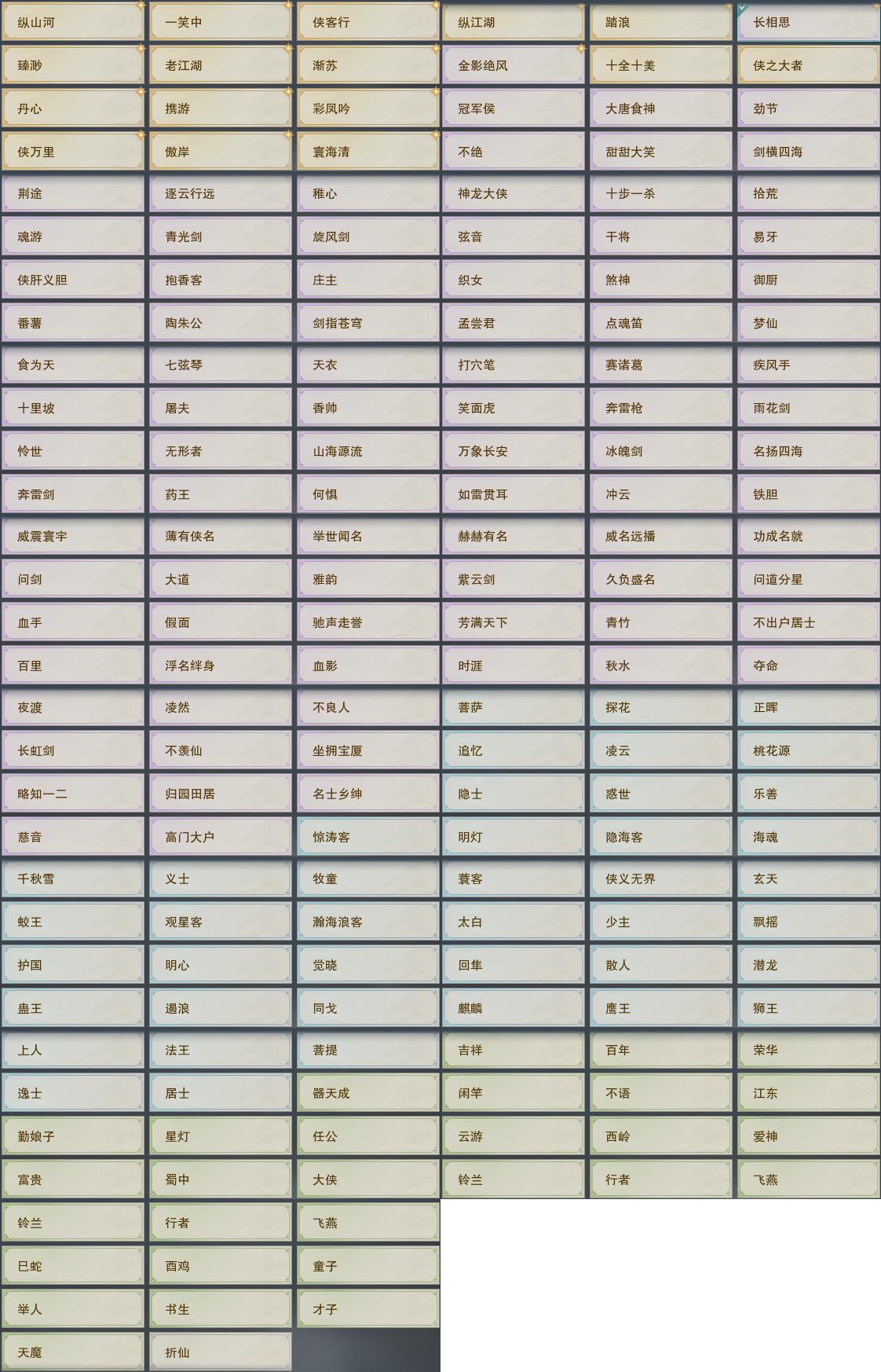 【称号】[纵江湖, 侠万里, 长相思]
